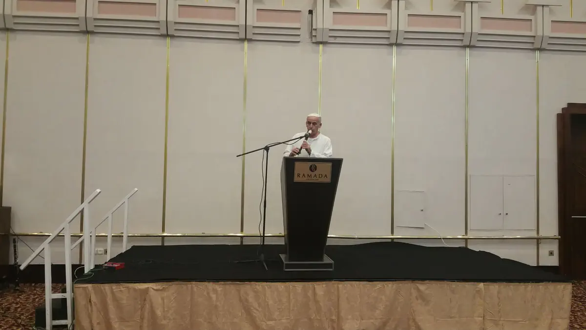 באזכרה שנערכת במלון ''רמדה'' בבירה, מנגן אליעזר רוזנפלד, אביו של מלאכי הי"ד שנרצח בפיגוע ירי לפני כחצי שנה.