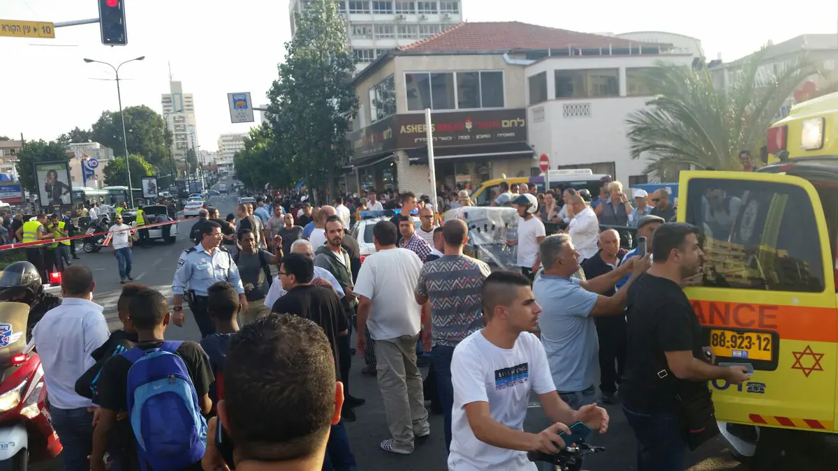 חובש בכיר במד"א יוני אוחיון ופאראמדיק מד"א אופיר פרנטקי שהגיעו למקום סיפרו, "כשהגענו למקום ראינו ברחוב הרצל סמוך למאפיה אישה כבת 80 שוכבת על המדרכה כשהיא בהכרה וסובלת מפצע דקירה מדמם בפלג גופה העליון. הענקנו לה טיפול רפואי ראשוני ופינינו אותה לבי"ח אסף הרופא כשמצבה מוגדר בינוני-קשה".