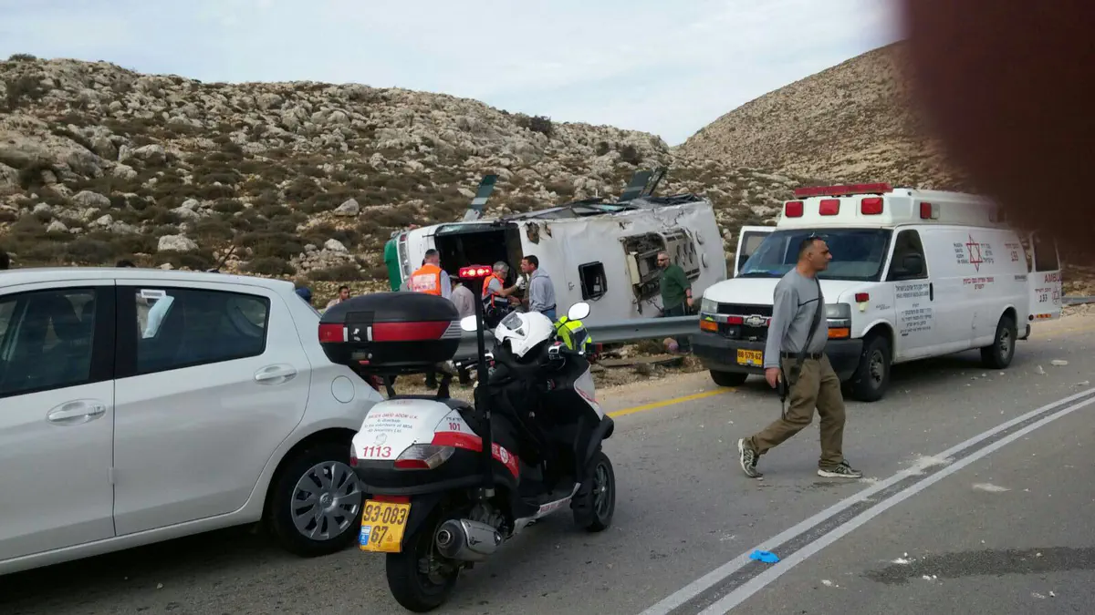 מנחם לף ראש סניף איחוד הצלה 'בנימין' דיווח, "מדובר באוטובוס שהתהפך לתעלה בצד הדרך. מרבית הנפגעים בהכרה מלאה ויצאו מהאוטובוס בכוחות עצמם. כמו ישנם מספר לכודים בתוך האוטובוס. בסיוע מתנדבים נוספים מיחידת האופנועים של איחוד הצלה אנחנו מעניקים טיפול רפואי ראשוני לנפגעים. צוותי כיבוי פועלים בזירה לחילוץ הלכודים".