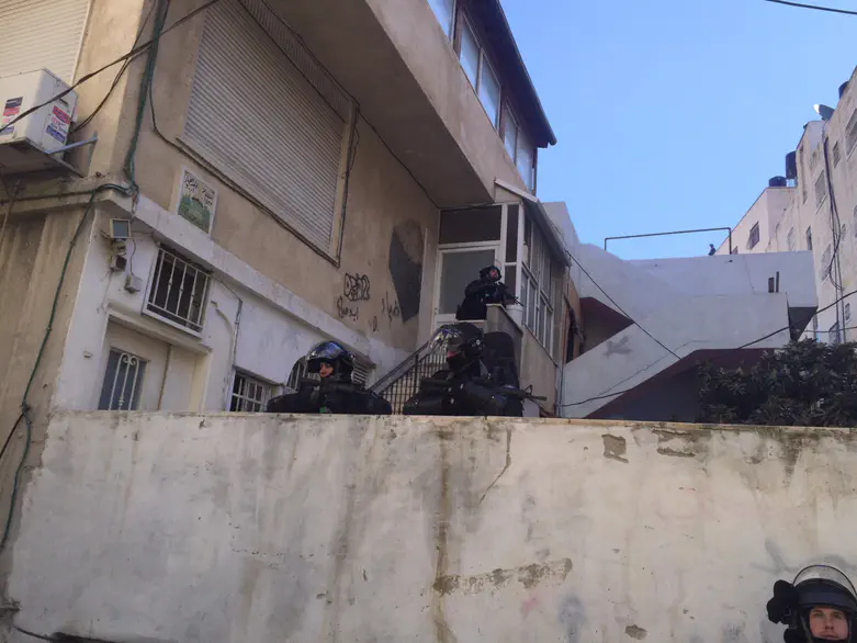 כוחות גדולים של צה''ל ומשטרה נערכים במחנה הפליטים שועפאט להרס בית המחבל שביצע פיגוע דריסה בנובמבר 2014 סמוך למטה הארצי בירושלים, בו נרצחו קצין משמר הגבול ג׳דעאן אסעד ושלום בעדני הי"ד.