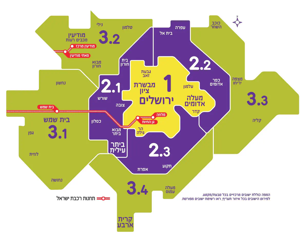 איך עובדת השיטה החדשה? מבנה התעריפים החדש מופעל בשלב ראשון בארבעת המטרופולינים הגדולים, שגבולותיהם הורחבו באופן משמעותי. מטרופולין חיפה, לדוגמה, משתרע מראש הנקרה בצפון ועד כרמיאל ונצרת במזרח וזכרון יעקב בדרום. מטרופולין תל אביב מגיע עד נתניה בצפון, אשדוד בדרום ומודיעין במערב.