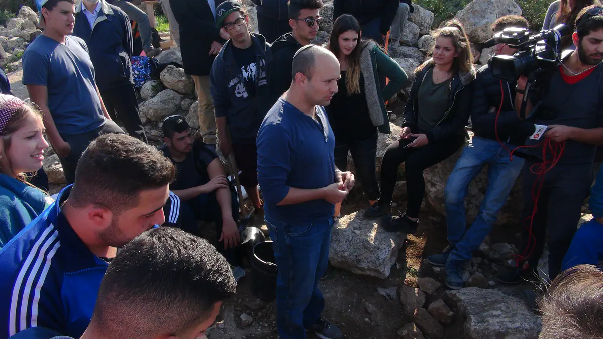 שר החינוך נפתלי בנט הגיע בצהריים (חמישי) לפארק עדולם והשתתף יחד עם תלמידים בגילוי ממצאים ארכיאולוגיים במקום.