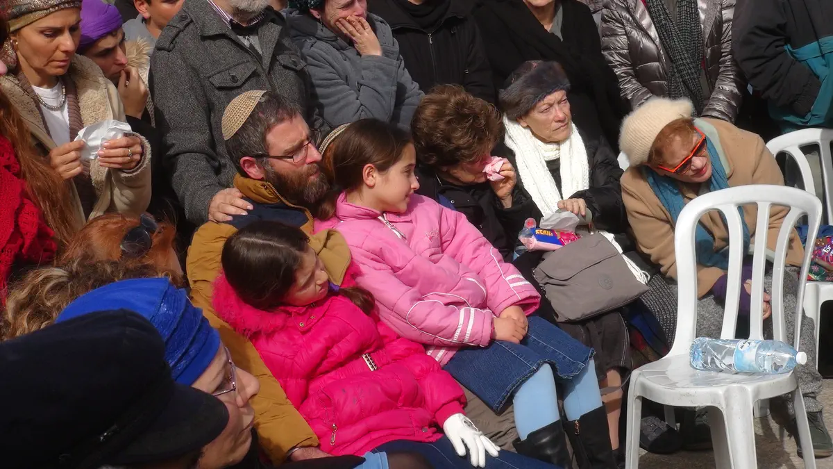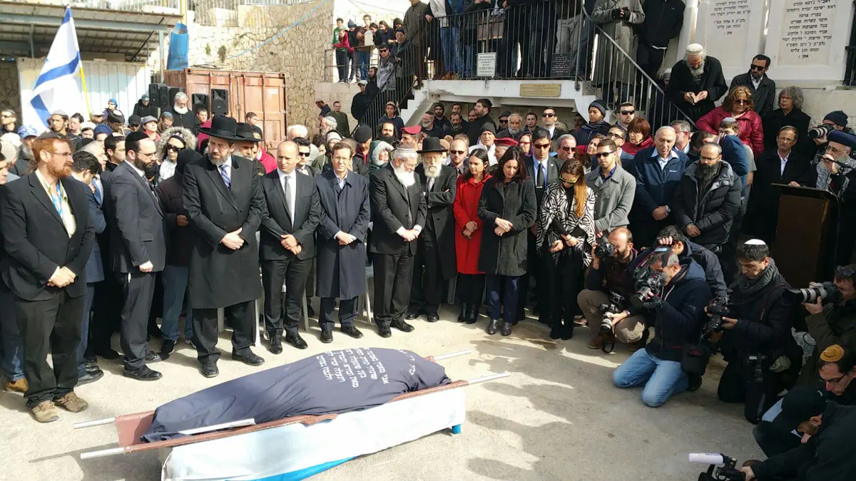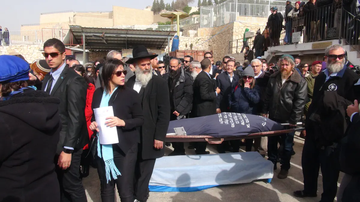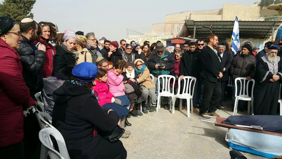 אבי המשפחה, נתן, והבן אמרו קדיש ומשם יצא מסע הלוויה להר המנוחות בירושלים.