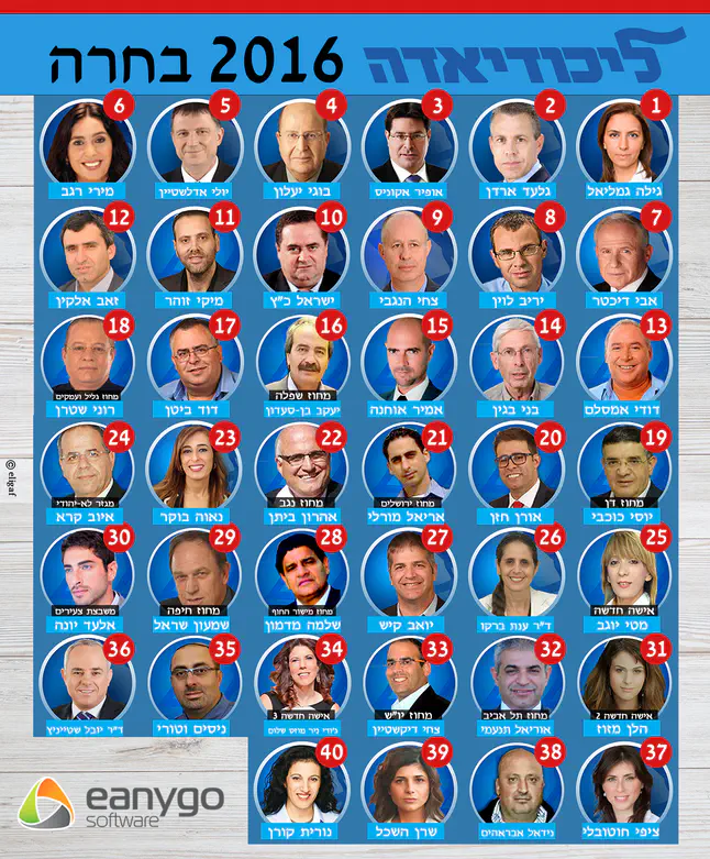 בראש הרשימה נבחרה השרה לשוויון חברתי גילה גמליאל ואחריה השר לביטחון פנים גלעד ארדן. למקום השלישי הגיע שר המדע, הטכנולוגיה והחלל, אופיר אקוניס.