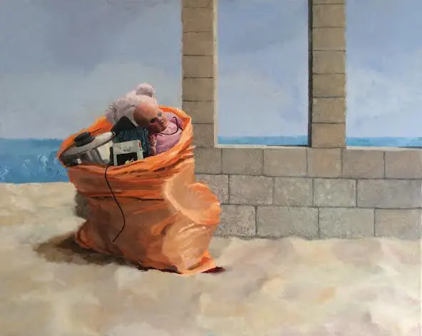 כך לדוגמא רננה שלמון, שציירה אישה המכוסה בכיסוי אדום ולידה שני ילדיה, כמו רוצה לבטא את הנוראות שבגירוש ואי-היכולת להביט בפניהם. בתמונה אחרת מציירת האמנית חני כהן-זדה מטלמון את הזלזול בחיי המגורשים ע"י ציור של שקית זבל כתומה ובה תכולת בית שלם.