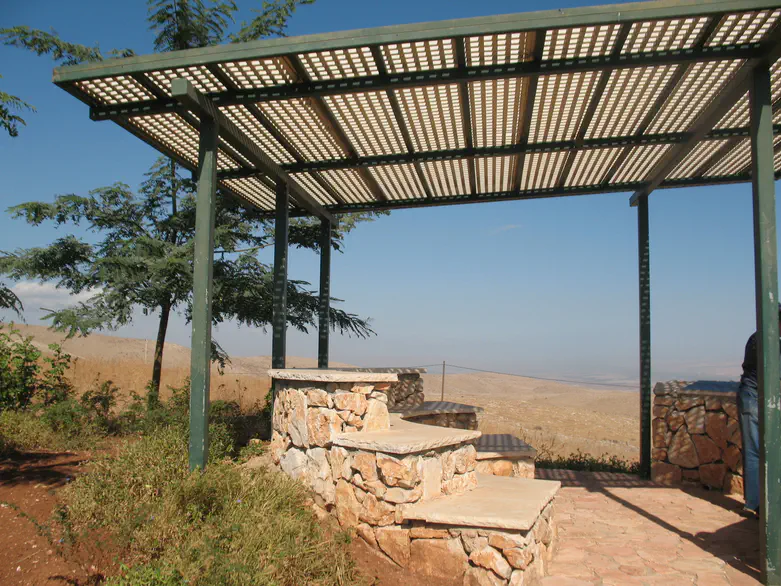 נסיעה על כביש פנימי תוביל אותנו עד לנקודת מרפסת התצפית, בה נשקפים פסגות עבר הירדן המזרחי ואתריו מחד ומנגד יישובי הבקעה. נחנה את הרכב ונלך עד למצפור כעשר דקות בשביל הכחול. מי שכוחו במתניו יכול להעפיל כשעה עד לראש ההר. זו בהחלט משימה ראויה לכיבוש הפסגה.