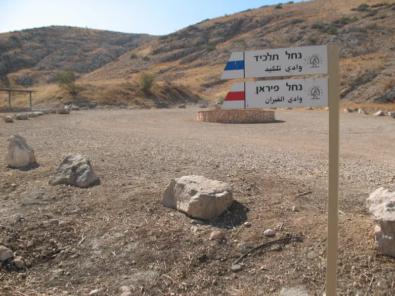 אחרי שהשבענו נאות עיננו נצא חזרה לכיוון כביש הבקעה למסלול רגלי בנחל תלכיד ונמל פיראן. מחנים את כלי הרכב בחניה מסודרת והולכים לפי הסימונים באדום והכחול. המסלול נכנס עמוק לתוך הוואדי הצר וחזר במסלול מעגלי עד לרכבים.