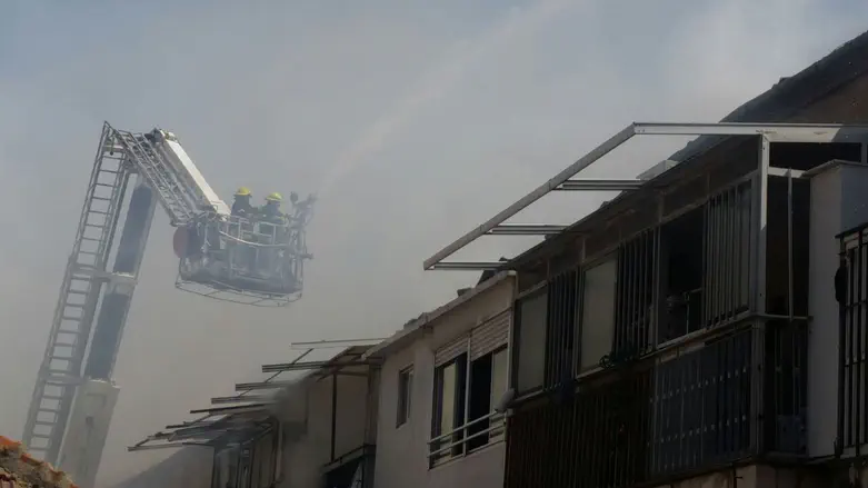 18 צוותי כיבוי בסיוע מנוף גבהים ורכבי אספקת מים פעלו במקום והשתלטו על השריפה שכילתה 7 דירות וגרמה לנזק לכל המבנה.