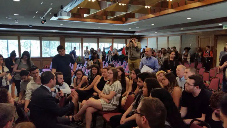 המפגינים ניסו למנוע את המשכה של ההרצאה בקריאות גנאי וקריאות לחידוש האינתיפאדה.