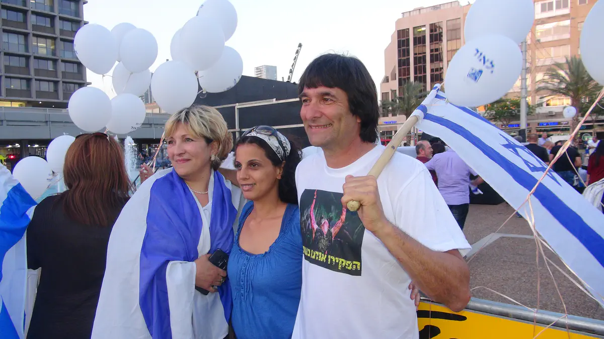 בשלב זה שוסעו דבריו של האב בשירה סוערת של "עם ישראל חי". האב הצטרף לשירה והוסיף "כל העם השפוי פה, אני אוהב אתכם".
