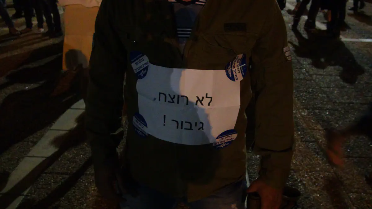 המפגינים קוראים קריאות בזכותו של החייל, בין היתר "העם דורש לשחרר את החייל", "הוא גיבור" ו"אם לא תחזירו את הילד נהפוך את המדינה".