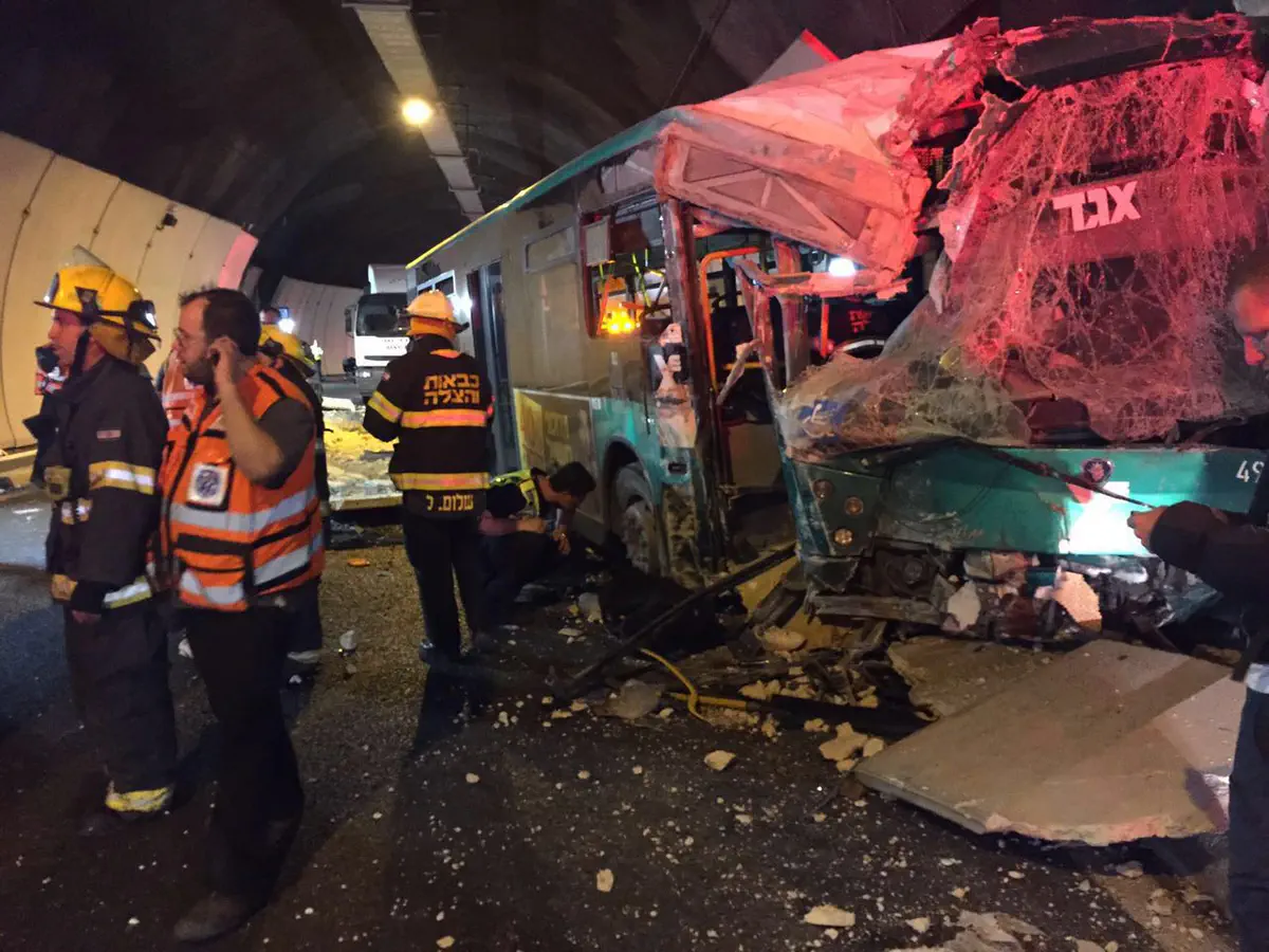 אוטובוס אגד בקו 101 התנגש הערב (חמישי) בקיר במנהרות הכרמל מכיוון חוף הכרמל לנווה שאנן בחיפה. ככל הנראה בתאונה מעורבת גם משאית.