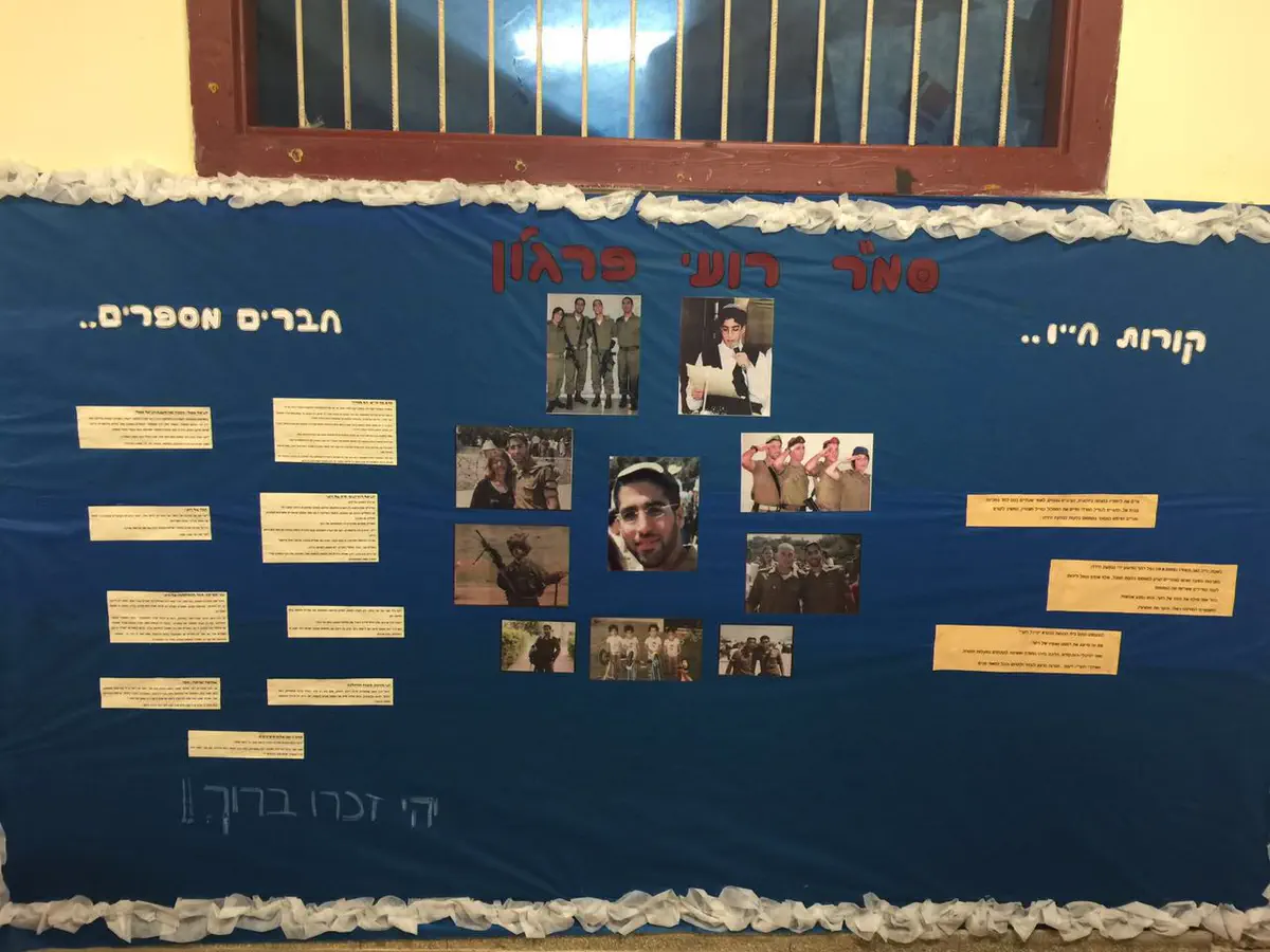 "על מצבתו של רועי החלטנו לכתוב את הכיתוב "ירא אלוקים, תמים בדרכיו וצנוע בהליכותיו" משפט שמאפיין מאוד את רועי ואת דרכו שהתחילה פה בביה"ס, המשיכה במכינה הקדם צבאית בבית אל ומשם לגדוד הנח"ל החרדי. באחד הפיוטים של רה"ש נכתב "עין במר בוכה ולב שמח" אני חושב שזה מתאר את הרגשותינו היום – מצד אחד עצוב לנו מאוד ומצד שני טיפת נחמה לראות שלא שוכחים ומוקירים את רועי".