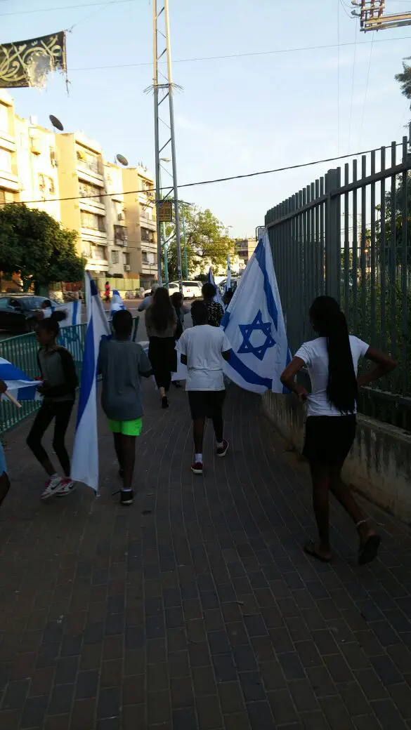 הצעירים עברו בבתי התושבים היהודים בשכונה שאלו לשלומם ותלו דגל בחלון ביתם. נעם דרייפוס מתושבי השכונה אמר, "תליית הדגלים דווקא בשכונה כזאת מרימה את רוח המשפחות החיות בבתים את רוח הסטודנטים והנוער הפועלים בשכונה ובעיקר משנה את האווירה ברחוב".