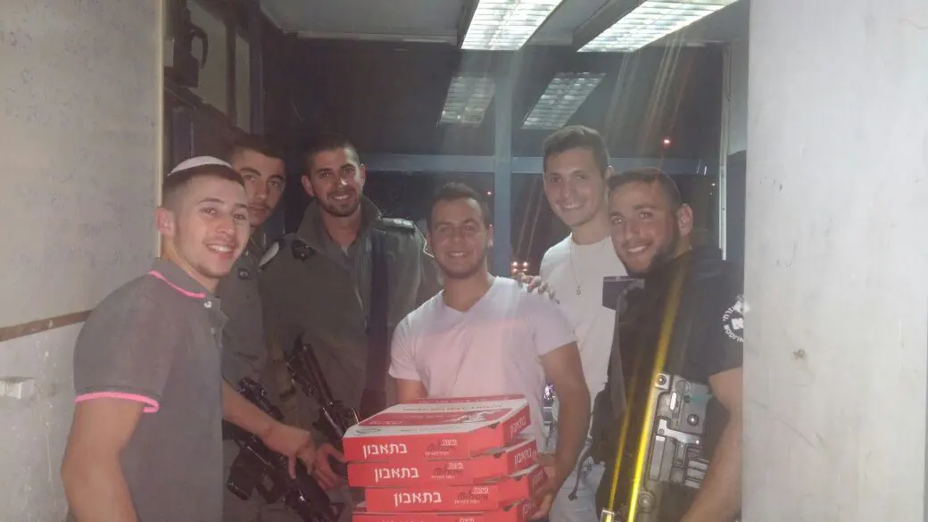 עשרות חיילים וחיילות המוצבים בעמדות שמירה ומחסומים סמוכים לכביש 60, הופתעו אמש (רביעי) לקבל מגשי פיצה חמים לארוחת ערב מידיהם של בני נוער.