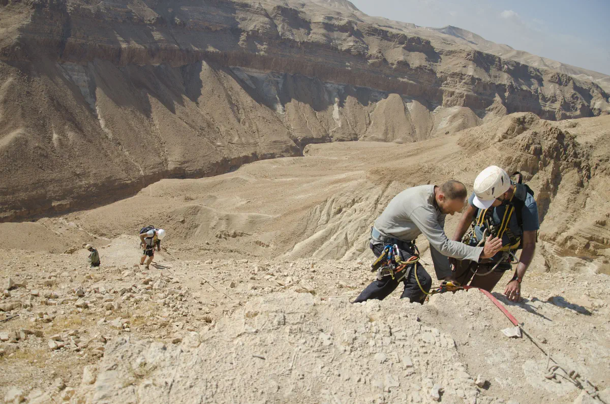 מערת הגולגלות, בה מתקיימת החפירה, ממוקמת כ-80 מ' מראש המצוק, וכ-250 מ' מעל בסיס הואדי. בשל תנאי ההגעה המאתגרים למקום, סללה רשות העתיקות, בהיתר מיוחד מרשות הטבע והגנים, מסלול הגעה, המצריך שימוש בציוד גלישה לשם איבטוח המשתתפים בחפירה. למשימה נרתמו יותר מ-500 מתנדבים ואנשי שטח מהארץ ומהעולם, הישנים וחיים במחנה בתנאי שדה מדבריים.