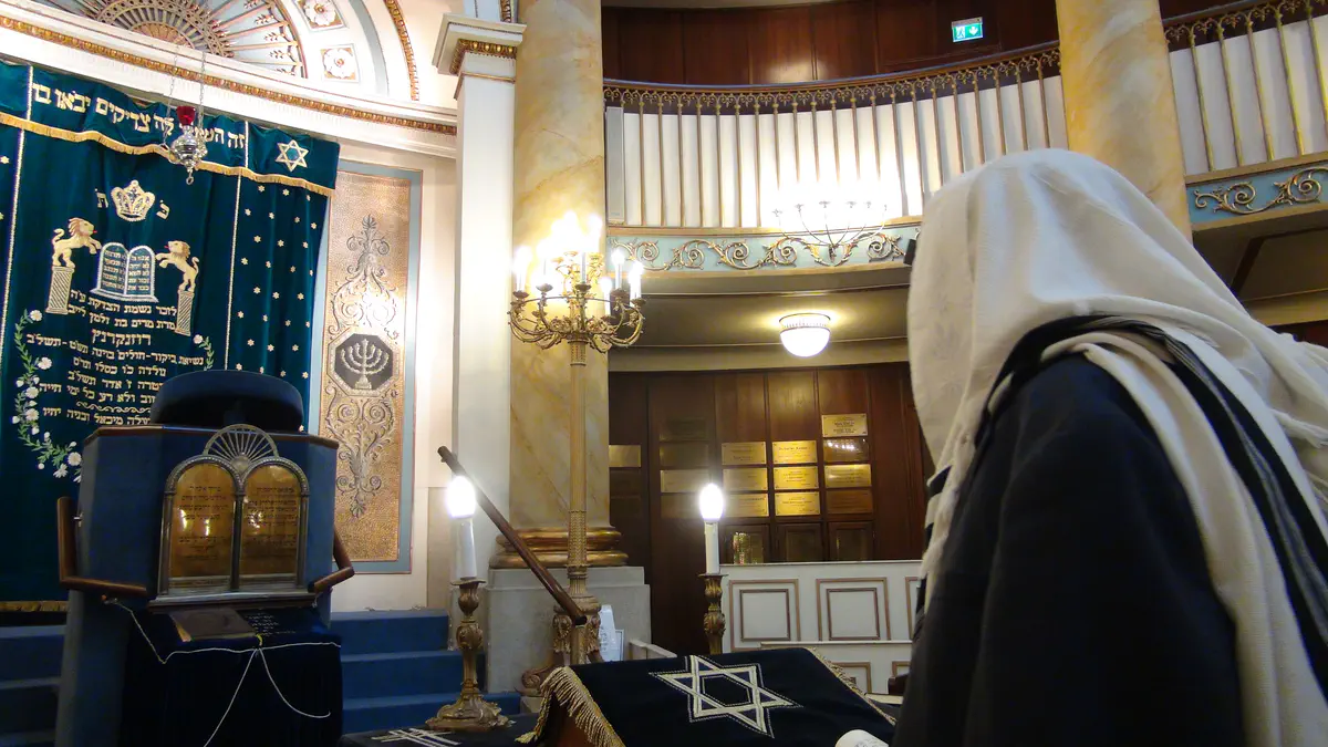 הרב חיים אייזנברג, רבה הראשי של וינה, מסייר עם כתב ערוץ 7 בבית הכנסת המפואר בוינה ששרד מלחמת עולם ופיגוע שהתרחש בו לפני 30 שנה.