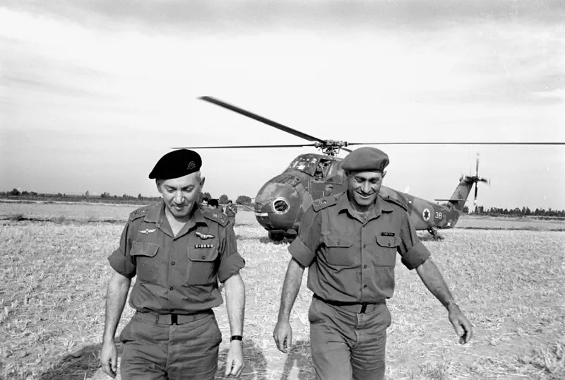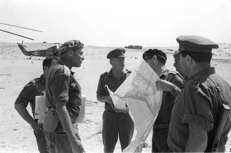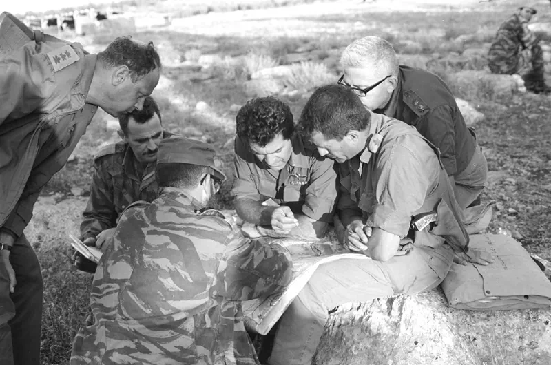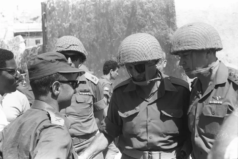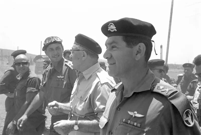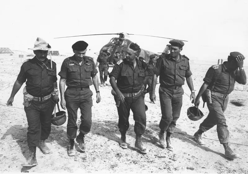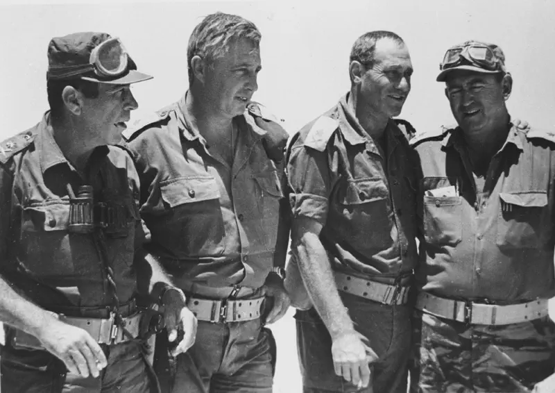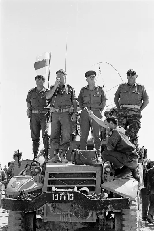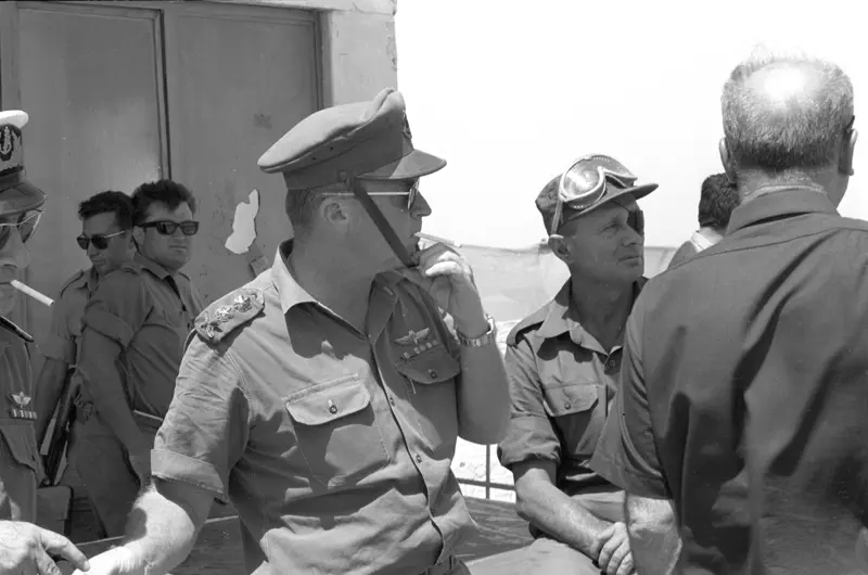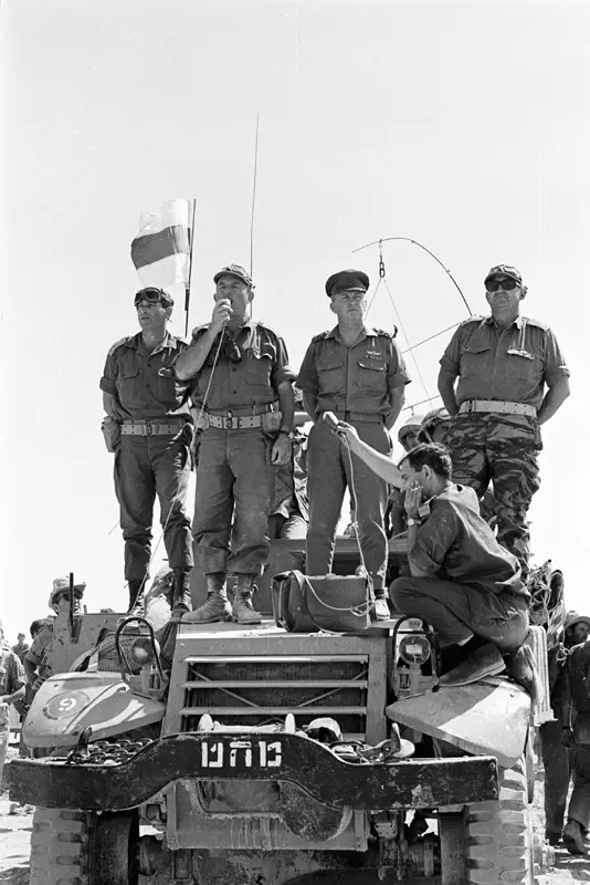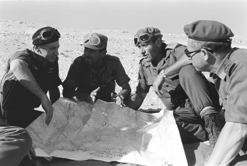 הרמטכ"ל יצחק רבין, אלוף פיקוד צפון דוד (דדו) אלעזר, אלוף פיקוד מרכז עוזי נרקיס, אלוף פיקוד דרום ישעיהו גביש ומפקד חיל האוויר מוטי הוד.