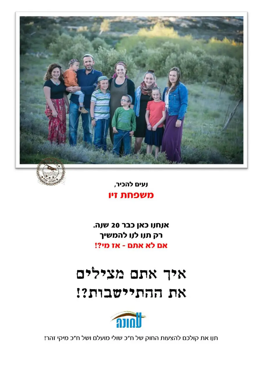 לפני ישיבת הסיעה חילק מטה עמונה פליירים המציגים חלק מתושבי עמונה, הקוראים לחברי הכנסת והשרים להציל את הישוב. בין הפליירים שחולקו לחברי סיעת הליכוד, ניתן היה לראות גם את הפליירים הבאים: