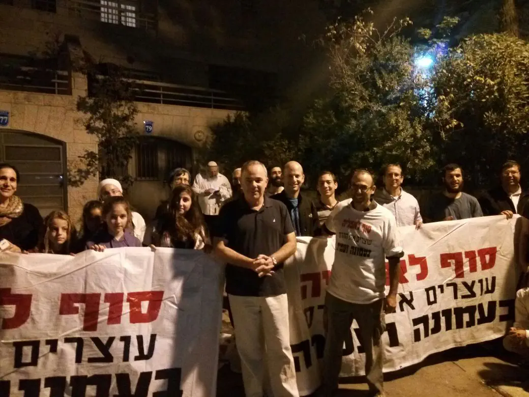 תושבי עמונה הפגינו (מוצאי שבת) מול ביתו של יושב ראש הבית היהודי, השר נפתלי בנט, על רקע הפינוי הצפוי בסוף השנה האזרחית. התושבים הפגינו גם מול בתי שרים נוספים.