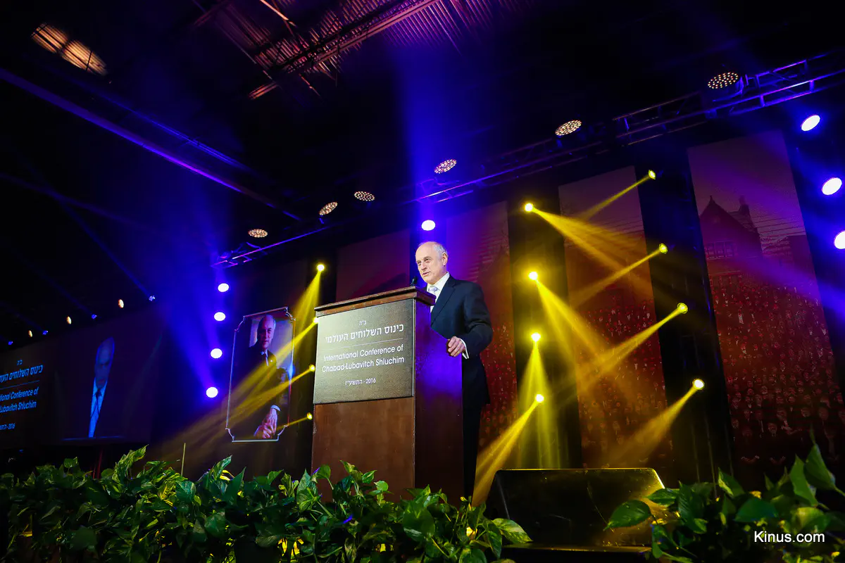 הנואם המרכזי בכינוס היה מלקולם הונליין, יו"ר ועידת הנשיאים של הארגונים היהודיים בארה"ב. בנאומו סיפר על קשריו עם הרבי מליובאוויטש ועל שליחויות עלומות בברית המועצות וכדומה. "אמרו על הרבי שהוא היה היהודי המשפיע ביותר במאה העשרים", אמר הונליין, "אבל זה לא מדוייק. הרבי הוא היהודי המשפיע ביותר גם במאה העשרים ואחת".