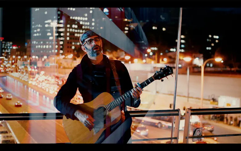 את המילים האלה שר-אומר בקול חרוך הזמר אריק סיני. ברקע רואים את גנוט פוסע בשעת בין ערביים עם גיטרה וקסקט בתחנת תל אביב השלום. בודד בתוך ההמולה. ואז מגיע הפזמון. גנוט עומד על גשר, על רקע שלושת מגדלי עזריאלי, וזועק לתל אביב: "נשבעתי ואקיימה לשמור משפטי צדקך!".