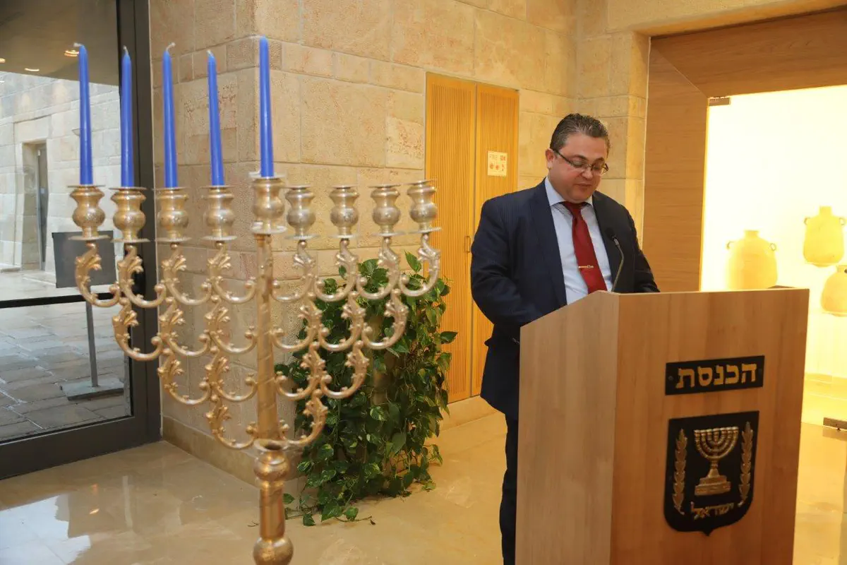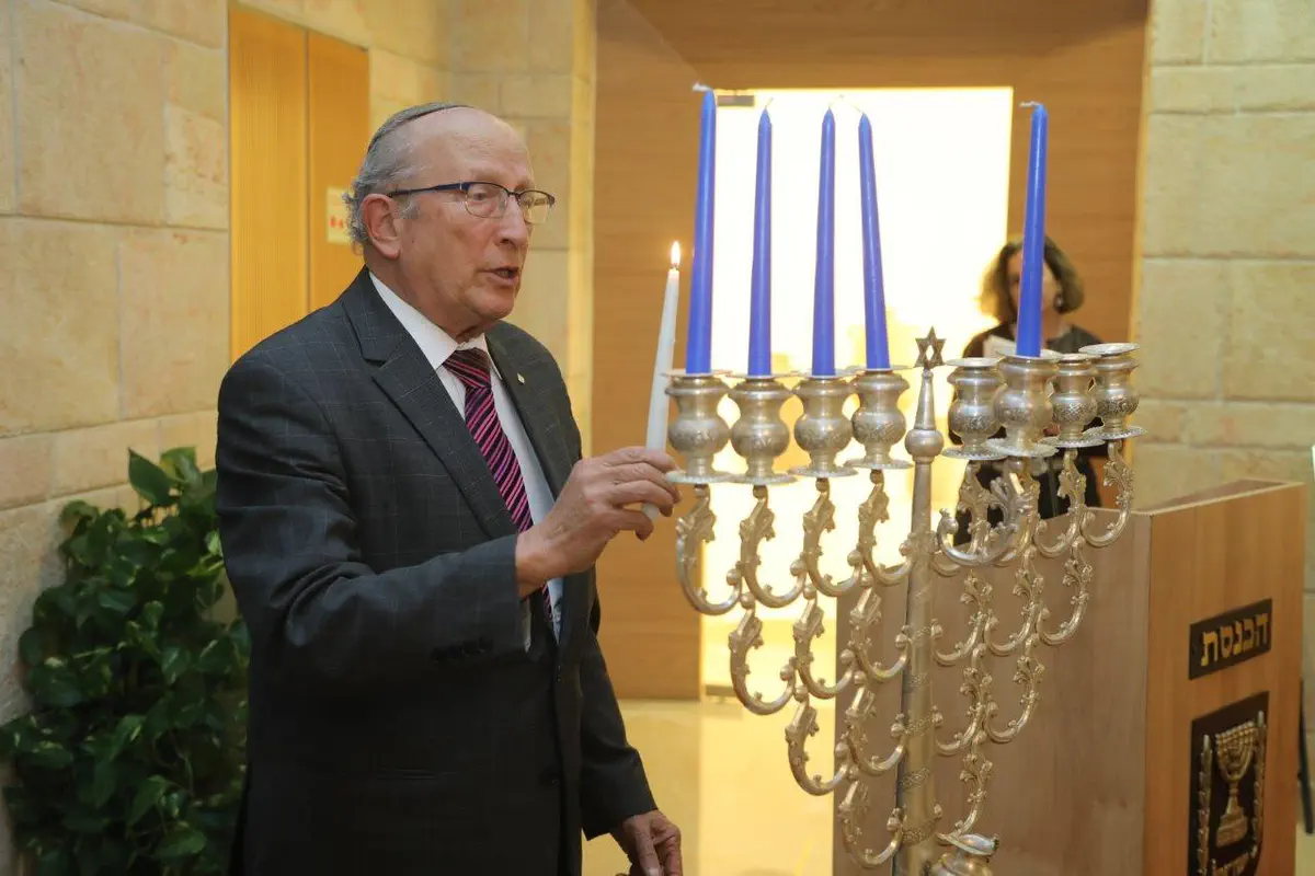 חבר ועד מוזיאון יהדות איטליה פרופ' דוד קאסוטו שעיצב את בית הכנסת שבמשכן הכנסת לפני כ-40 שנה התכבד בהדלקת נר רביעי של חנוכה.