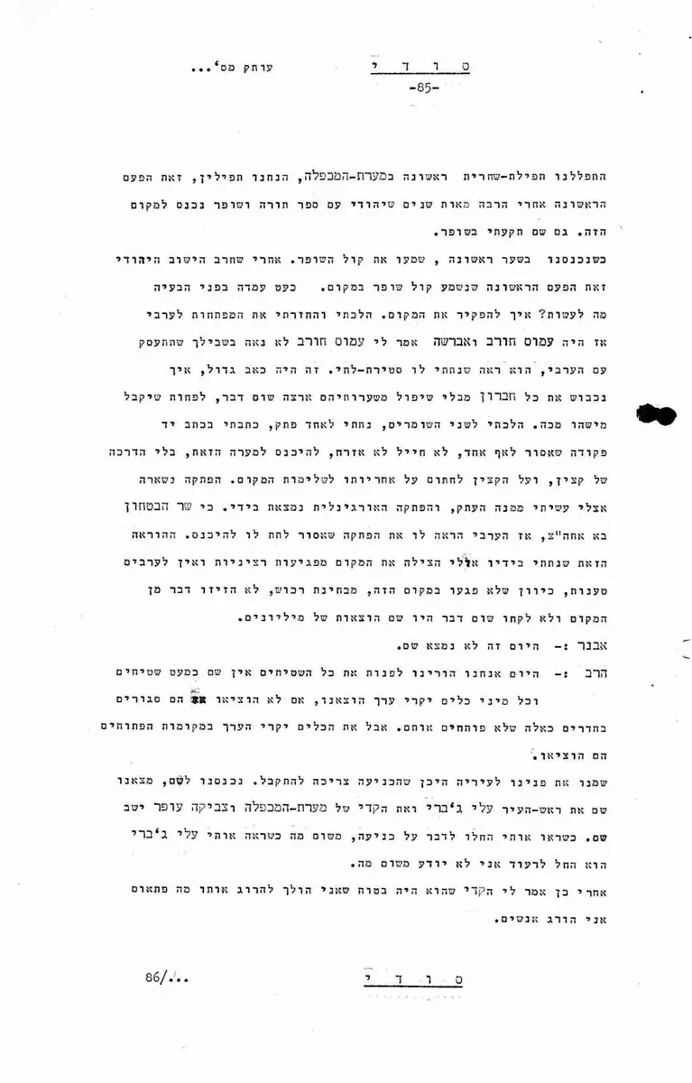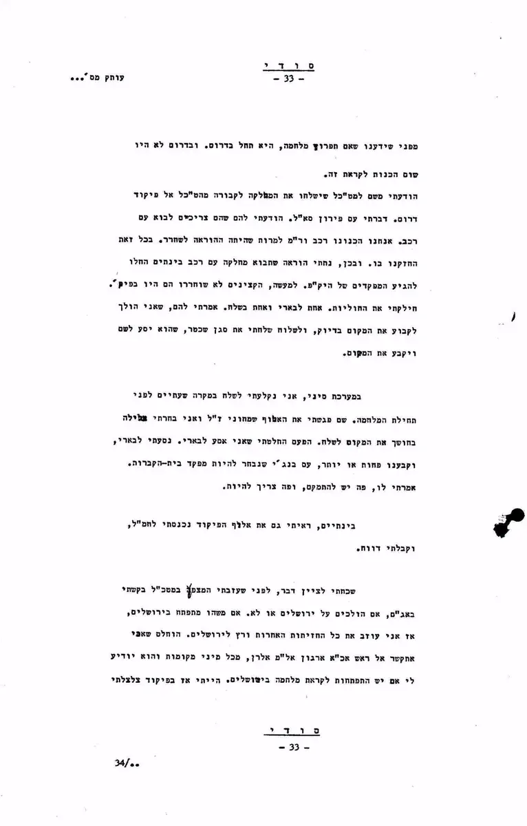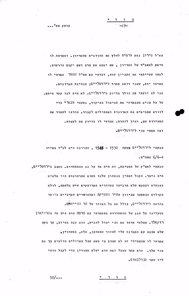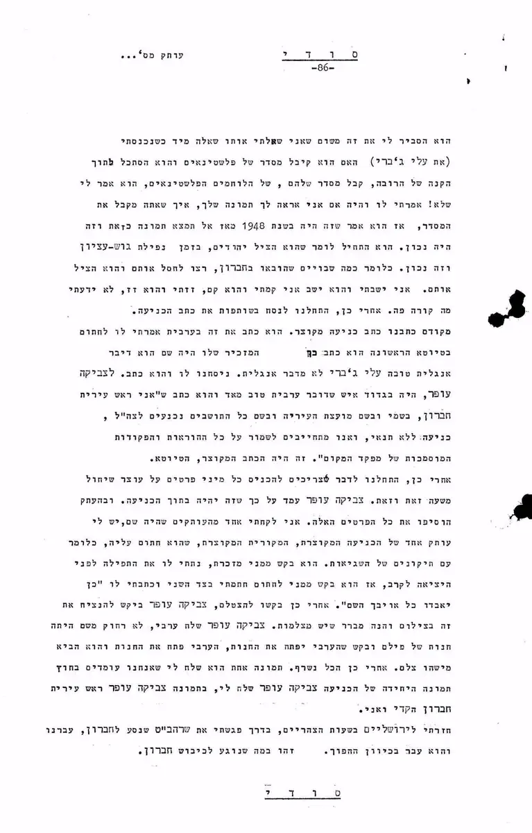 בחודש אוקטובר 1968, כשנה וחצי לאחר מלחמת ששת הימים, התייצב הרב הצבאי הראשי דאז, אלוף הרב שלמה גורן, בפני חוקרי מחלקת ההיסטוריה של צה"ל, וסיפר להם את קורותיו במלחמת ששת הימים.