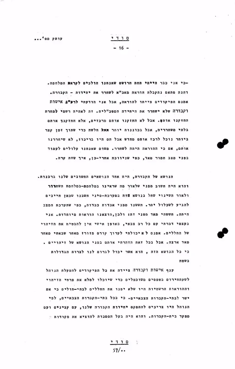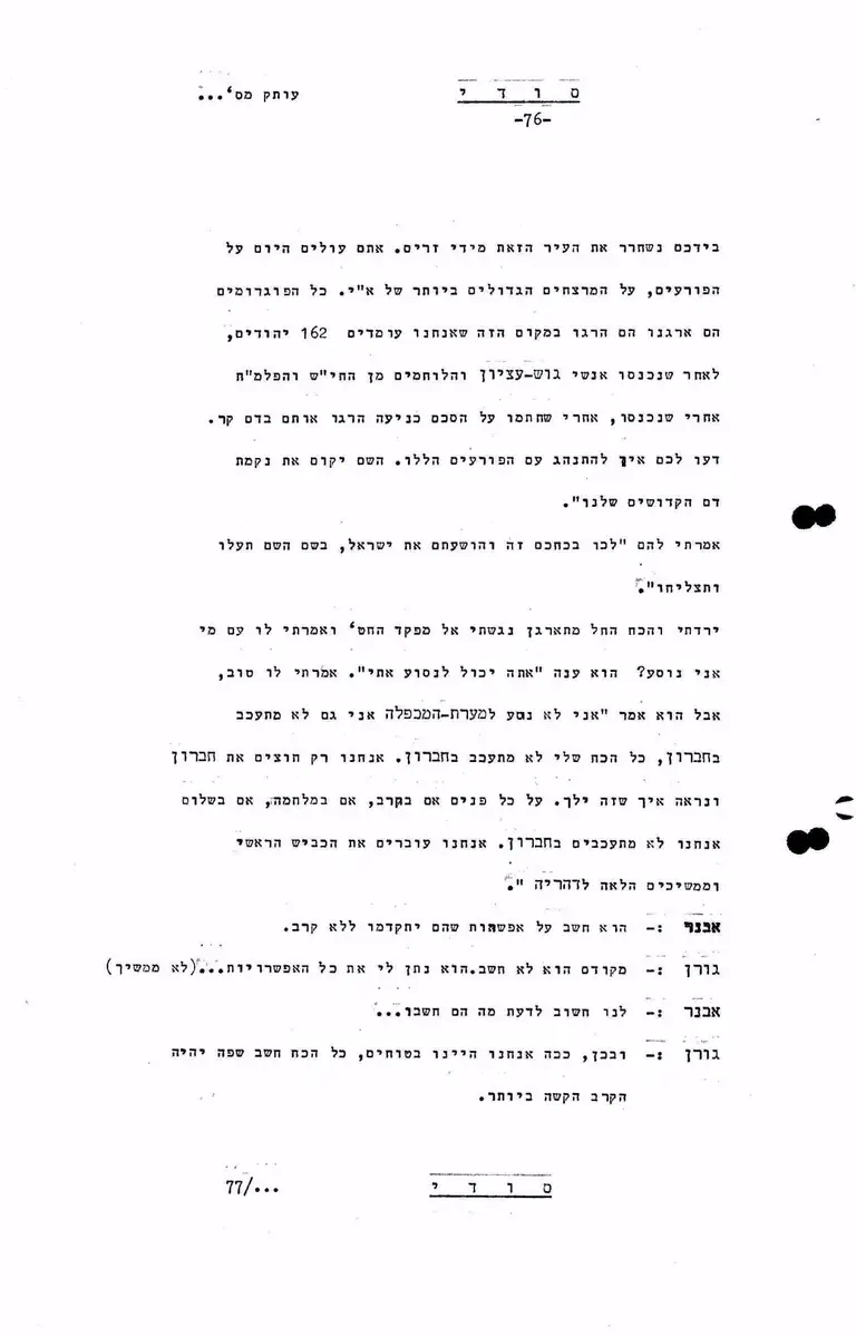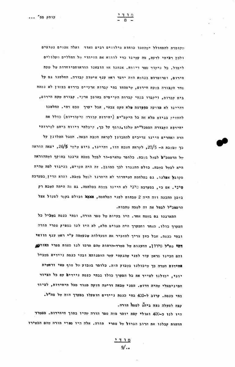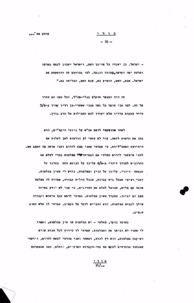 בחודש אוקטובר 1968, כשנה וחצי לאחר מלחמת ששת הימים, התייצב הרב הצבאי הראשי דאז, אלוף הרב שלמה גורן, בפני חוקרי מחלקת ההיסטוריה של צה"ל, וסיפר להם את קורותיו במלחמת ששת הימים.