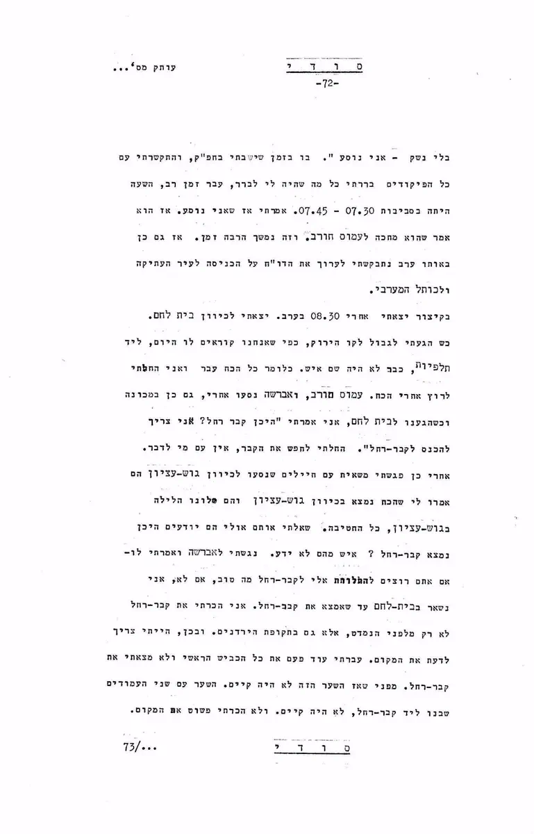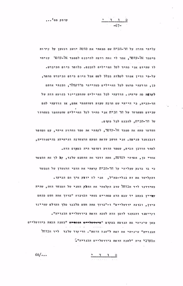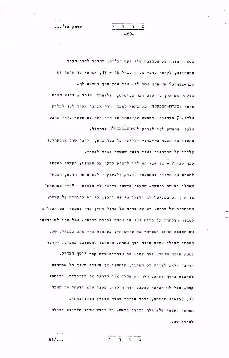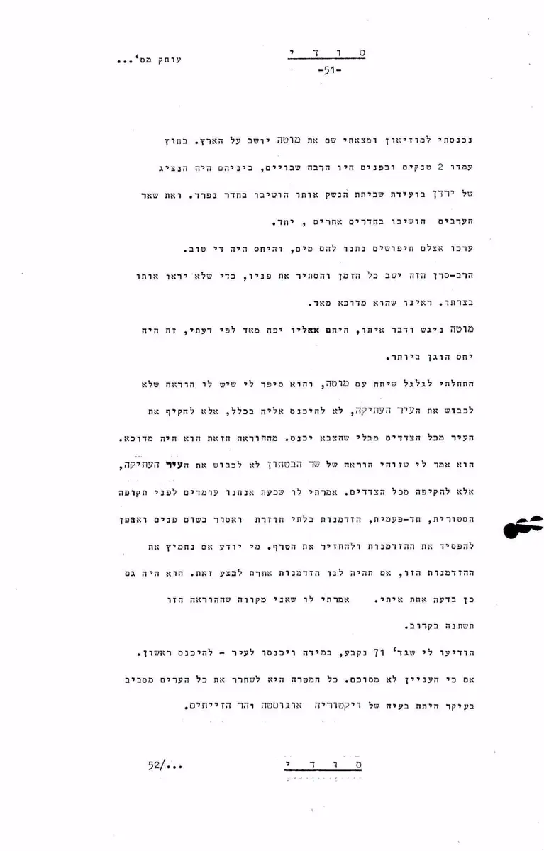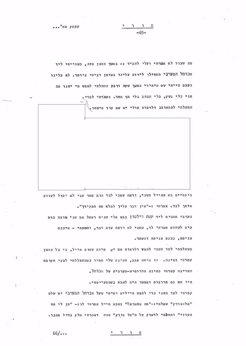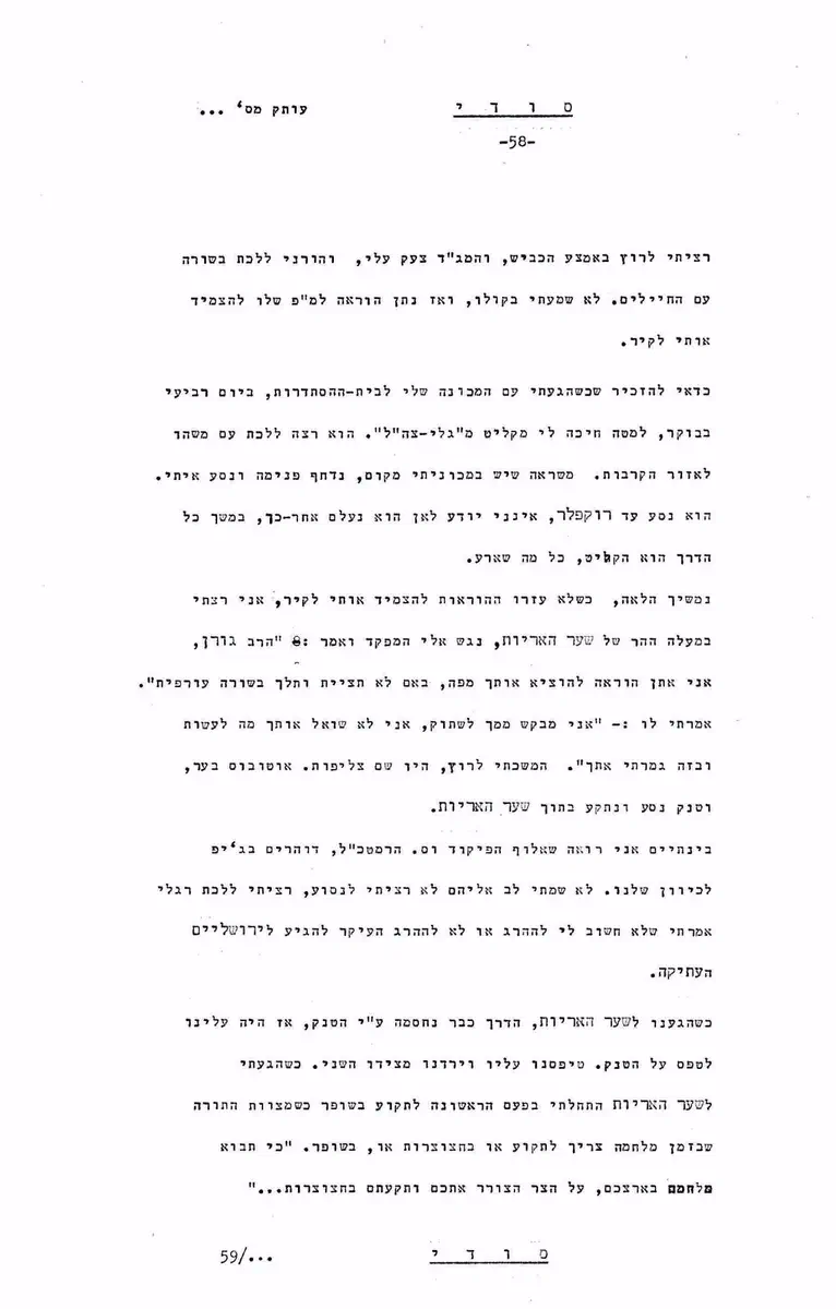 "ירדתי מן המכונית והחזקתי ביחד אחת את השופר וביד השנייה את ספר התורה. התחלתי לרוץ לכיוון שער האריות. לא ידעתי בדיוק איזה גדוד זה, זה היה גדוד 28. כלומר גדוד 71 הלך מאחוריו והתארגן ושרידי גדוד 28, הלכו לכיוון שער האריות. כל הדרך הייתה תחת צליפות והפגזה".