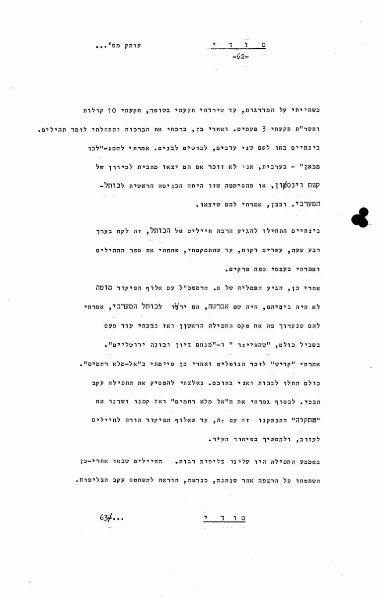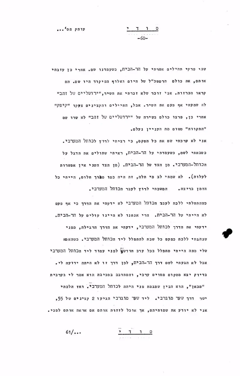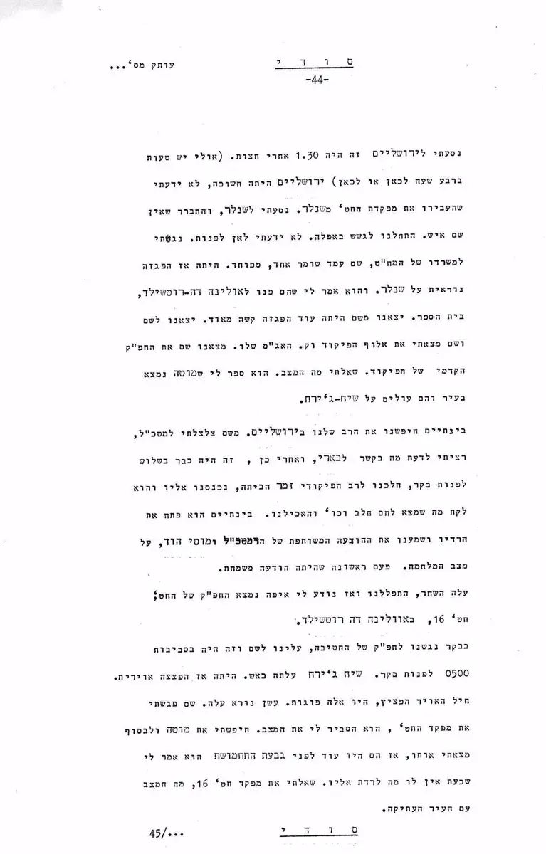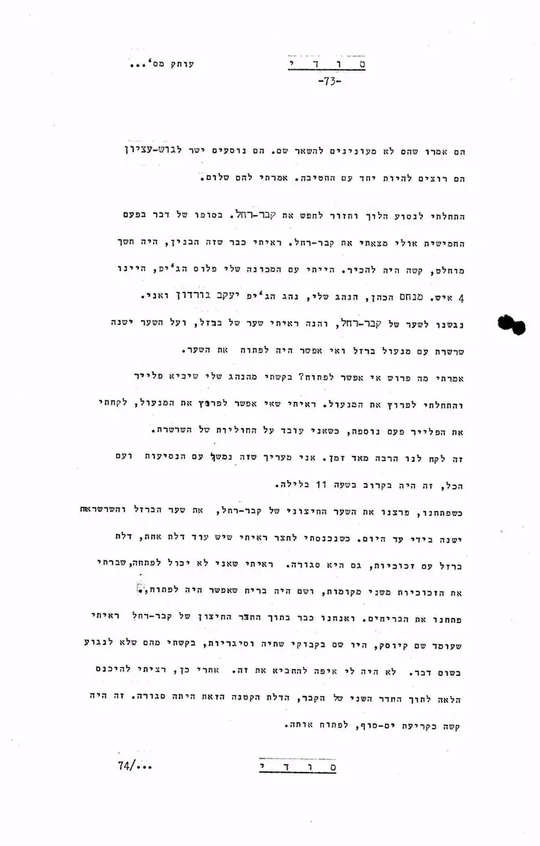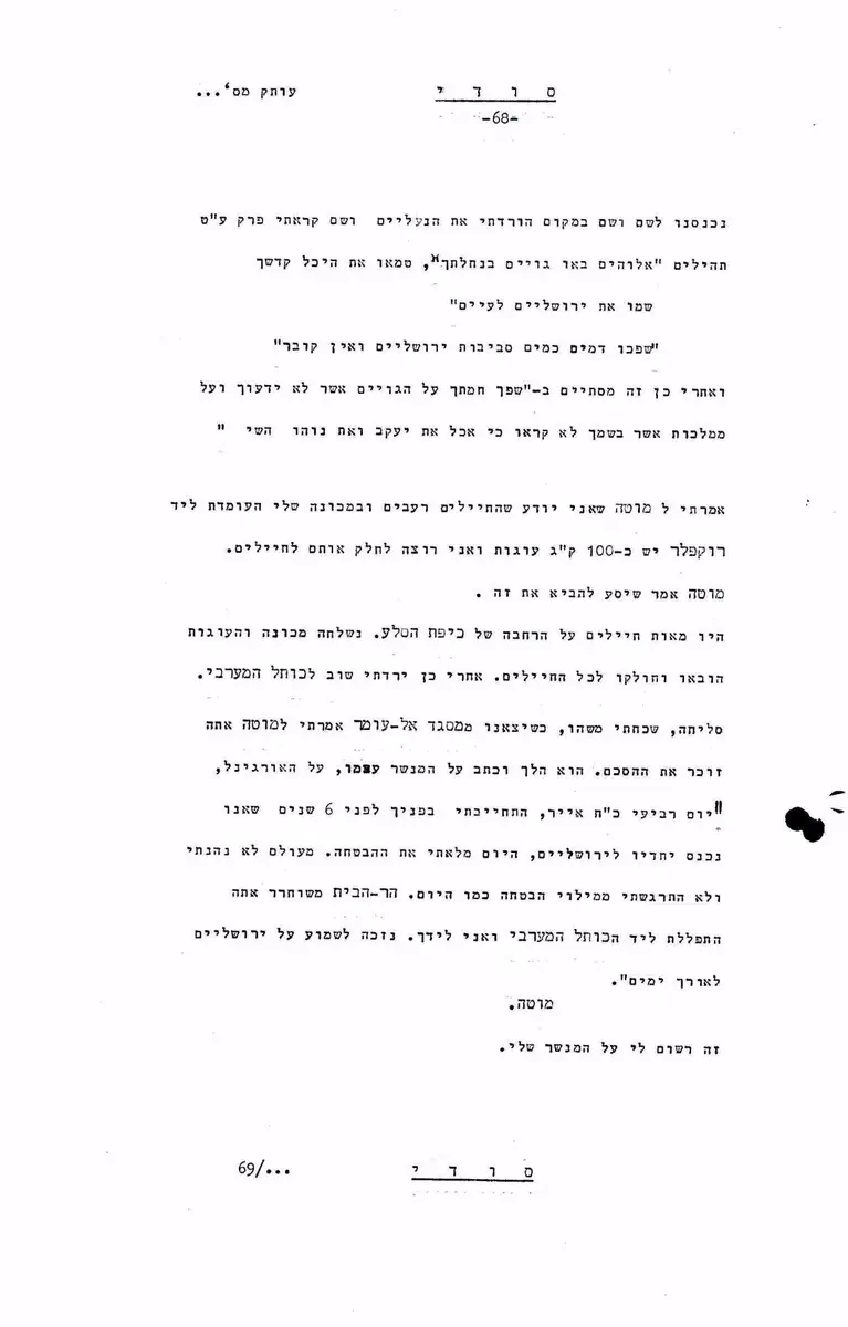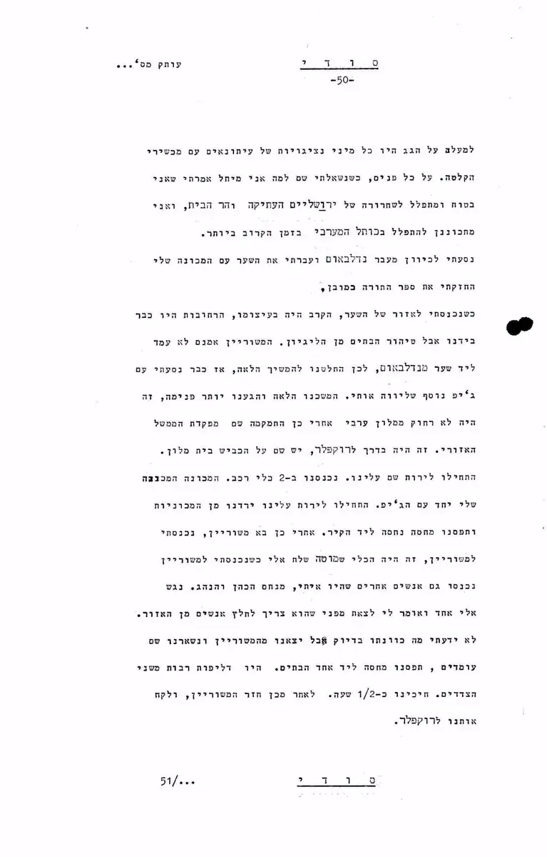 "ירדתי מן המכונית והחזקתי ביחד אחת את השופר וביד השנייה את ספר התורה. התחלתי לרוץ לכיוון שער האריות. לא ידעתי בדיוק איזה גדוד זה, זה היה גדוד 28. כלומר גדוד 71 הלך מאחוריו והתארגן ושרידי גדוד 28, הלכו לכיוון שער האריות. כל הדרך הייתה תחת צליפות והפגזה".