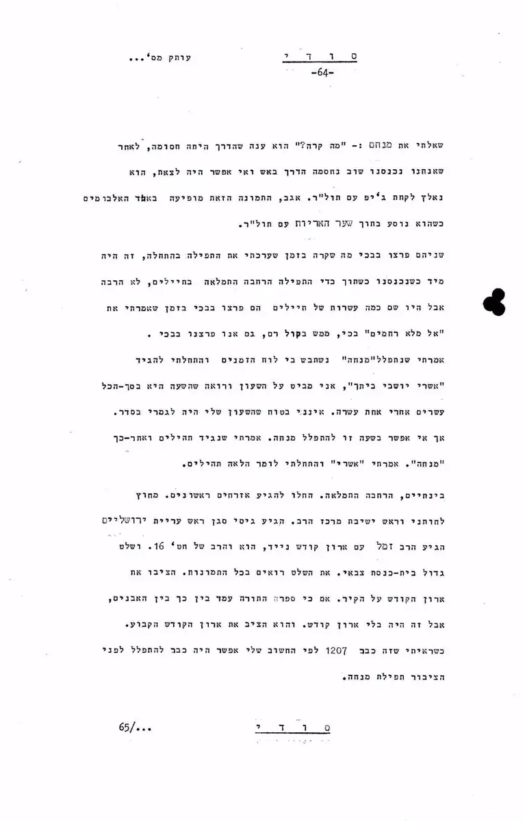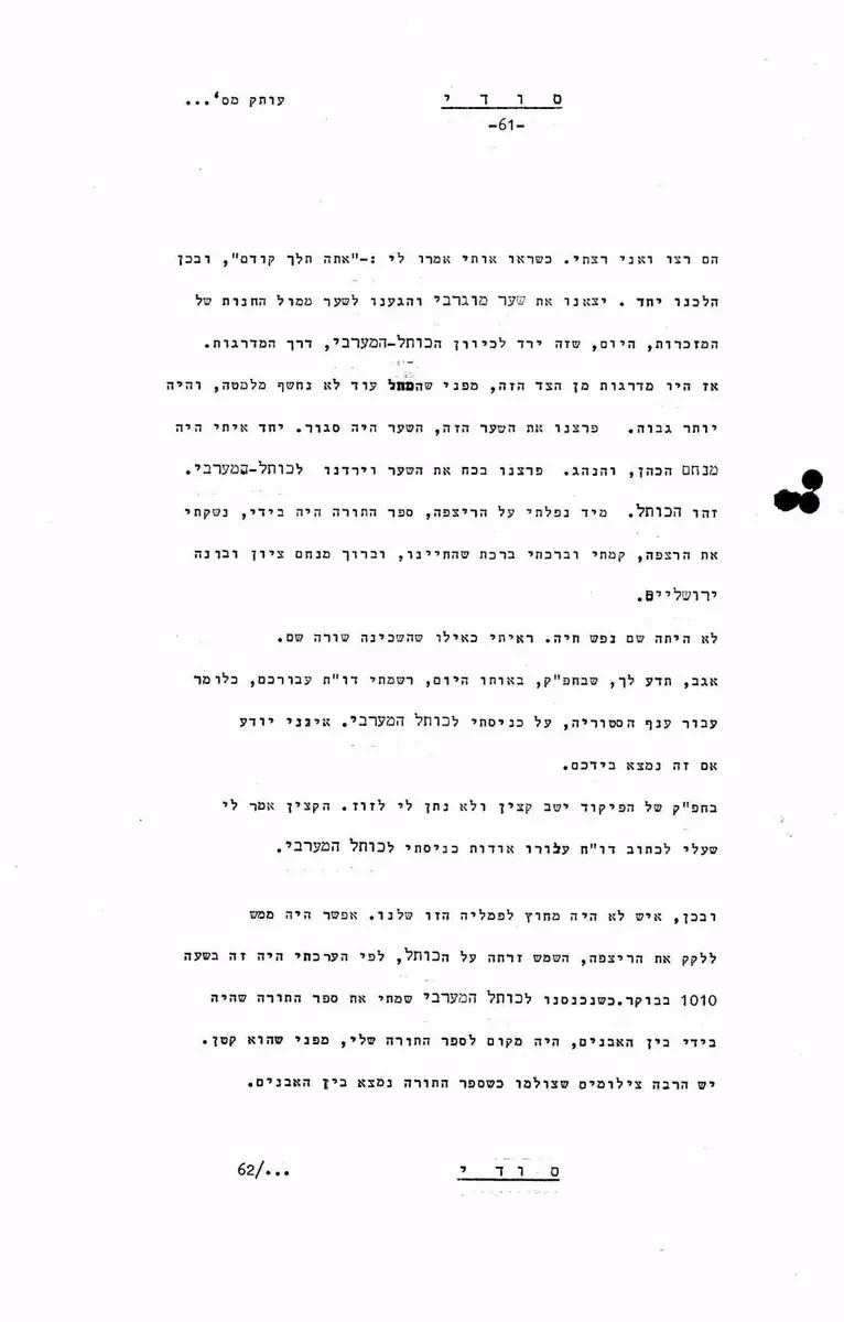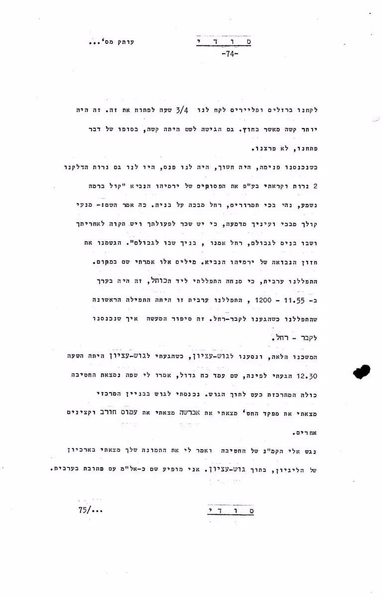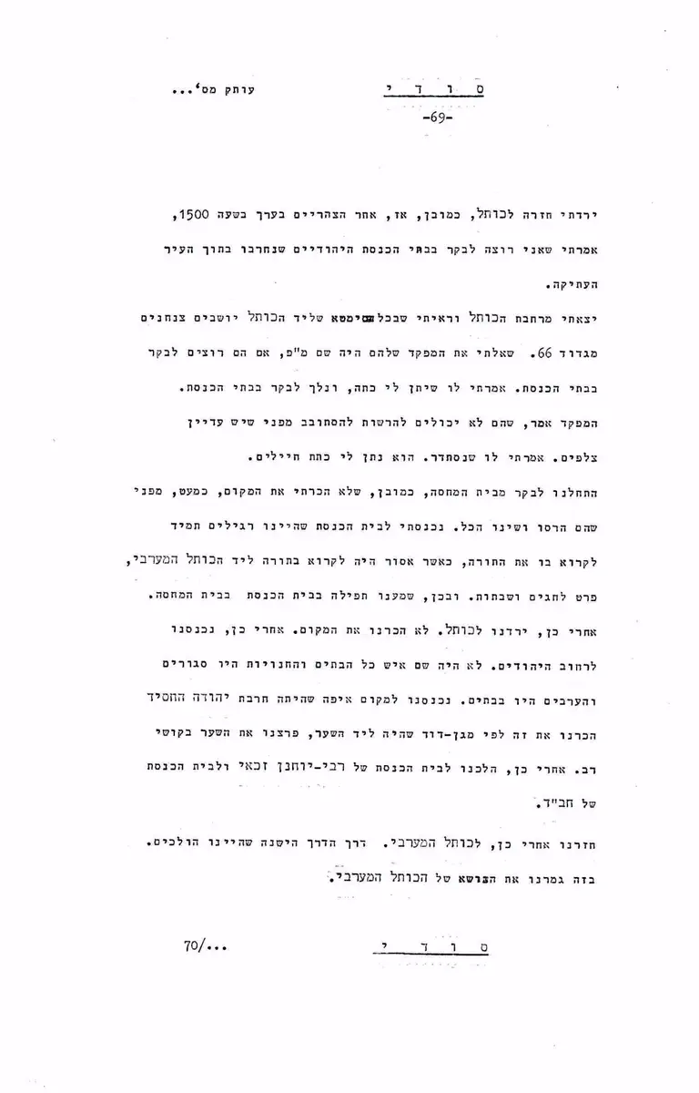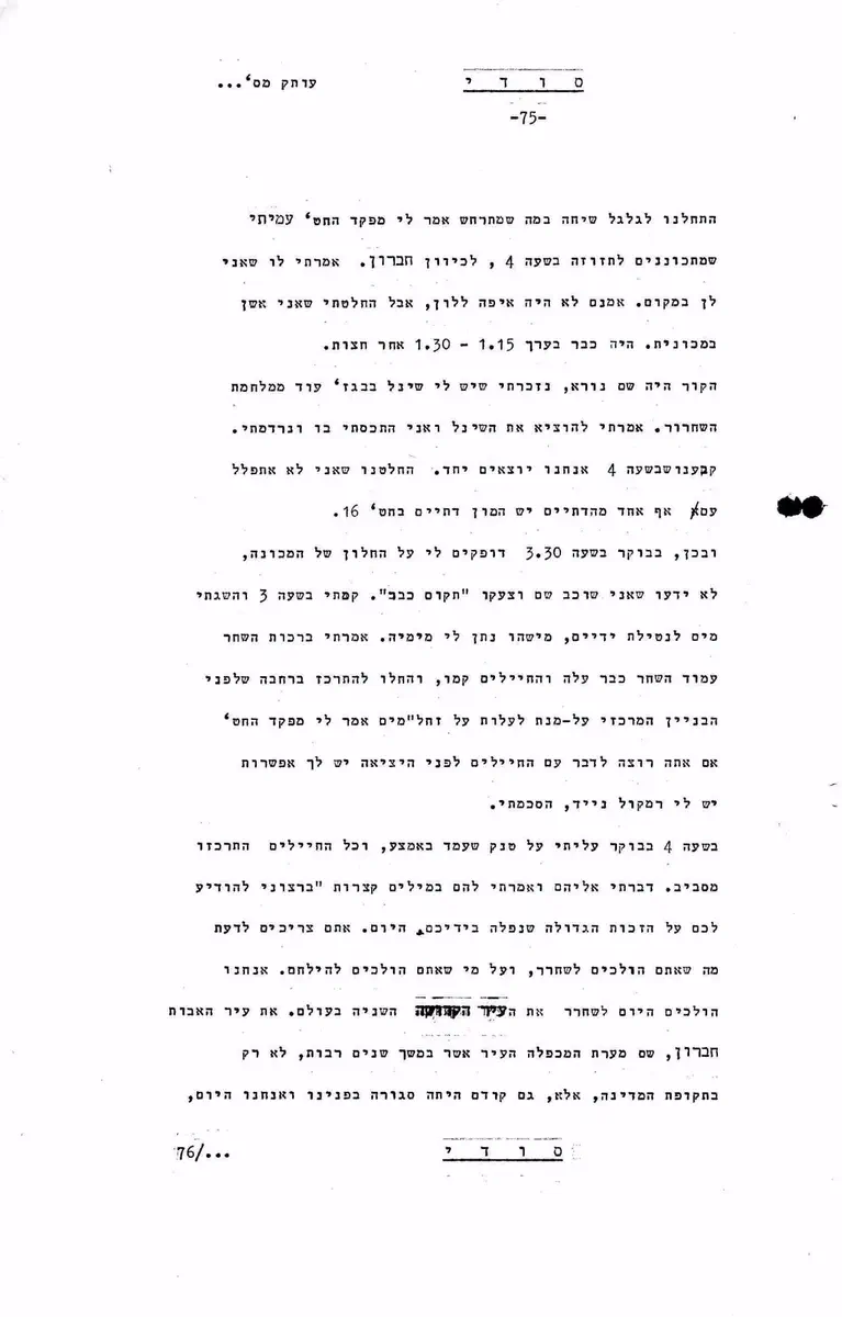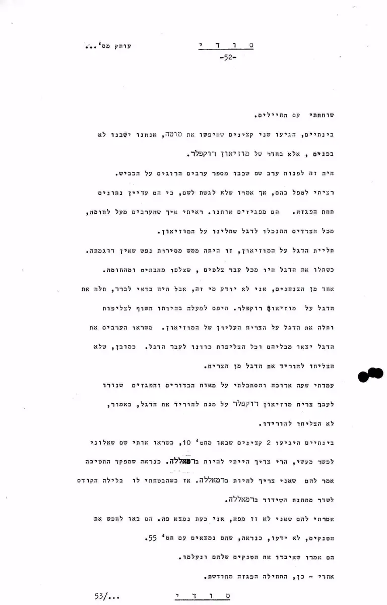 "ירדתי מן המכונית והחזקתי ביחד אחת את השופר וביד השנייה את ספר התורה. התחלתי לרוץ לכיוון שער האריות. לא ידעתי בדיוק איזה גדוד זה, זה היה גדוד 28. כלומר גדוד 71 הלך מאחוריו והתארגן ושרידי גדוד 28, הלכו לכיוון שער האריות. כל הדרך הייתה תחת צליפות והפגזה".