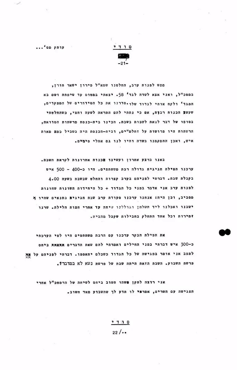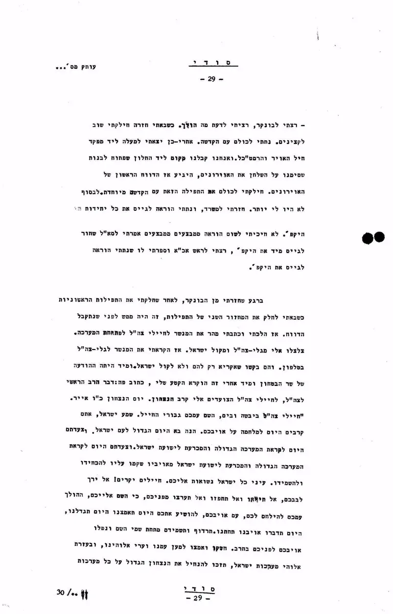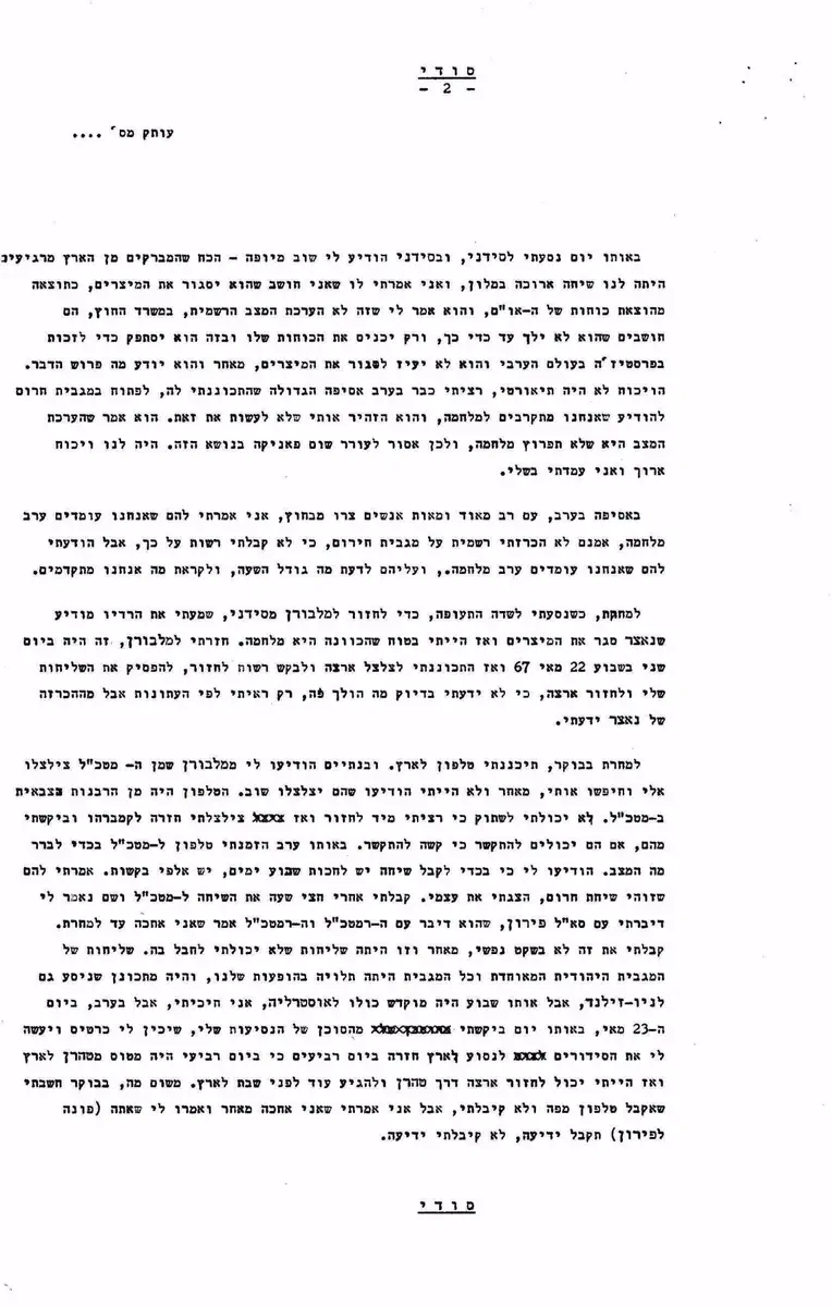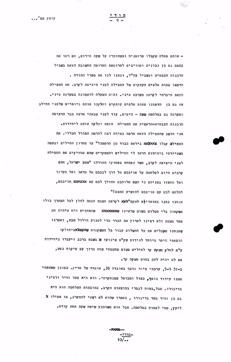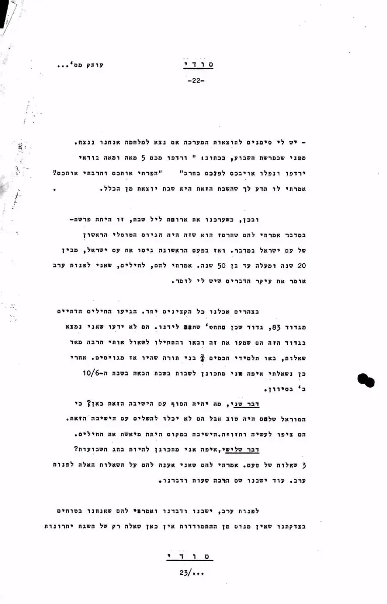 "בנאום שלי בבית הכנסת בניו יורק הודעתי להם שאנחנו עומדים לקראת מלחמה", שחזר הרב גורן. "בנאום שנשאתי שוב פעם אחרי התפילה בקידוש לפני כל הקהל, אמרתי להם אז, שאני חושש שאנחנו מתקדמים למלחמה וכי המלחמה הזו עלולה להביא לשחרורה של כמעט כל ארץ ישראל ואיחלתי להם, שנזכה לתקוע בשופר ליד הכותל המערבי".