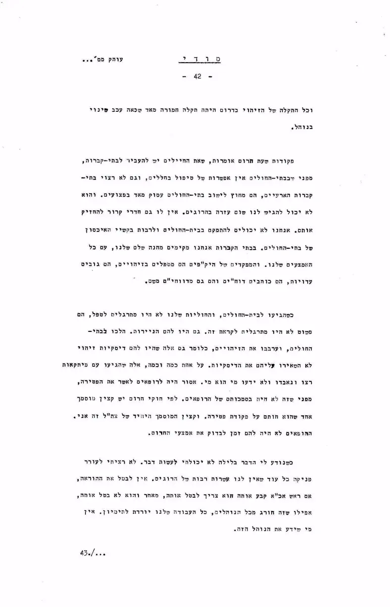 "אנשים בכו וההתרשמות שלהם הייתה כאילו אנחנו הולכים לקראת שואה", העיד הרב גורן. "כשראיתי את פניהם ואת ההתרגשות והבכי, פתחתי את ארון הקודש ואמרתי להם שעם ספר התורה אני נשבע שבכל קונסטלציה נגד כל אויב, בכל חזית שהיא, נגד כל מדינה ערבית לחוד ונגד כולם, אנחנו ננצח. הודעתי להם שאני עוד מתכונן לתקוע בשופר ליד הכותל המערבי והעניין הרגיע אותם מאוד".