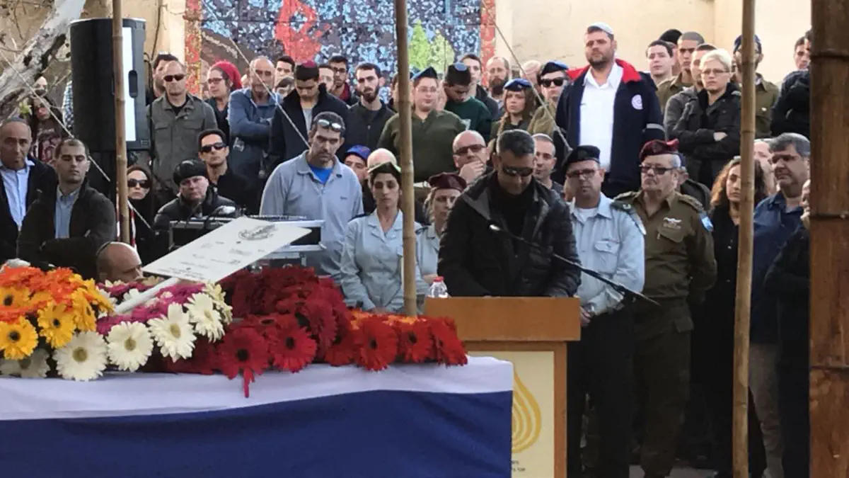 "קיבלנו החלטה להחזיר אותך הביתה בשנה וחצי האחרונות. אין נחמה לאובדנך וזכינו להיות איתך עוד שנתיים וחצי. כולם נקבצו לחלוק לך היום כבוד אחרון. אף פעם לא דיברת בשבח עצמך. אתה יכול להיות גאה באשתך באופן שבו התנהלה. מוריה והילדים יהיו חלק מחיינו כל עוד נשמה באפינו. פגע בך כדור קטלני ששינה את מציאות חיינו והיום תם המסע שלך. לך לשלום בן אהוב", הוסיף.