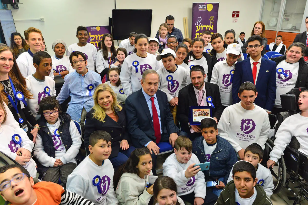 למעלה משישים ילדי עמותת "הקו המאחד" הגיעו (יום ה') ללשכת ראש הממשלה בירושלים כדי לחגוג בר מצווה.