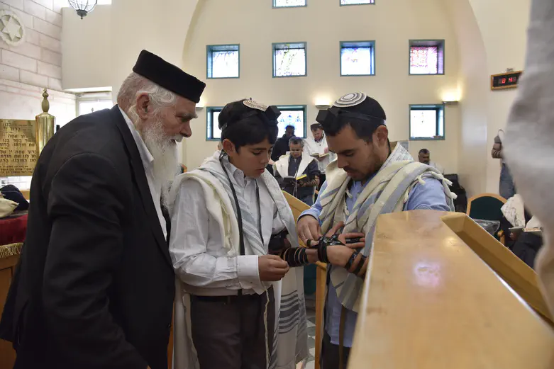 בטקס מרגש של הנחת תפילין השתתפו בני משפחתו וחברים רבים לצד סבתו מרים פרץ ואמו שלומית פרץ.