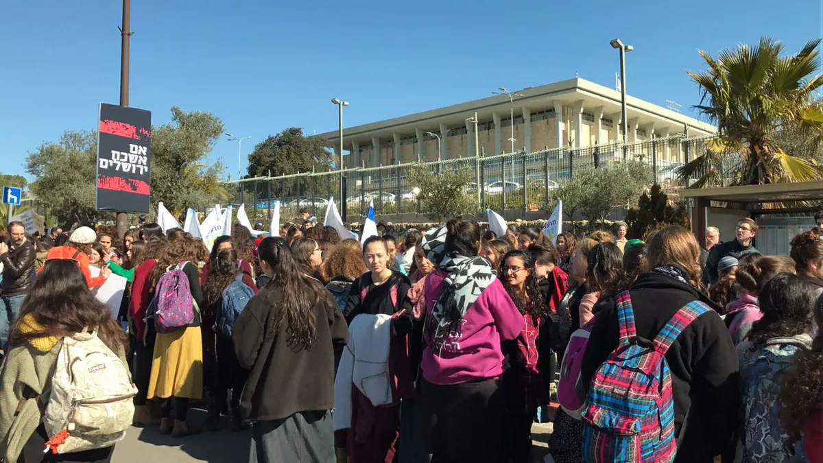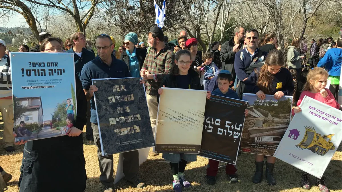 אלפי בני אדם משתתפים הבוקר (שני) בעצרת מחאה מול משרד ראש הממשלה נגד הריסת היישוב עמונה והריסת תשעת הבתים בעפרה.