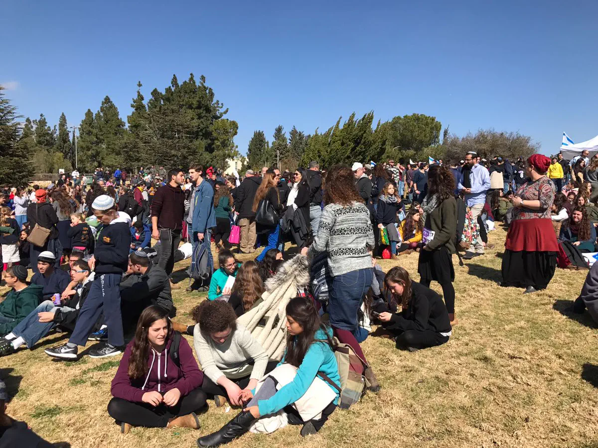 קודם להפגנה נערכה צעדה ממוזיאון ישראל לגן הוורדים. בראש הצועדים - ראשי המועצות מיהודה ושומרון ותושבי עמונה ועפרה.