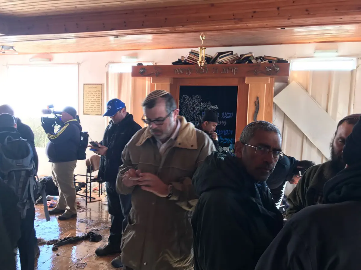 בזמן שבו השוטרים פינו את המתרסים והמחסומים שהוקמו בכניסה, עשן יצא מהכניסה לבית הכנסת בעקבות מטף שהופעל לעבר השוטרים.