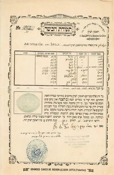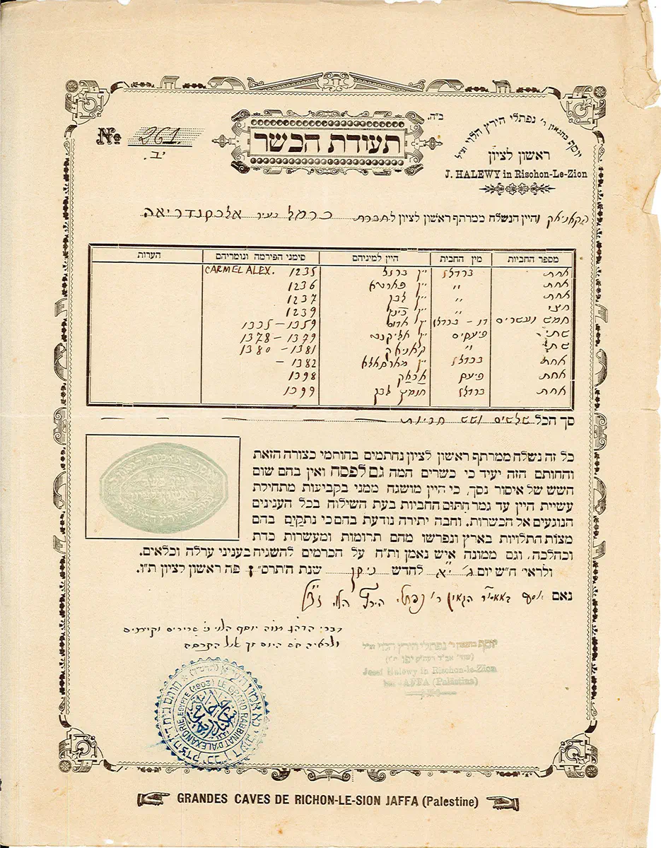 כמו כן, נמצאו באוספי הארכיון הציוני המרכזי שתי תעודות כשרות נוספות: תעודת כשרות לפסח לסיגריות תוצרת בית החרושת דפה (מוזס את וסקביץ) בתל אביב בהשגחת הרבנות הראשית ליפו ותל אביב, תרפ"ט – 1929. תעודת כשרות לקוניאק וליין של יין ראשון לציון, שנשלח בחביות לחברת כרמל בעיר אלכסנדריה בחתימתו של הרב נפתלי הרץ הלוי, תרס"ז - 1907.