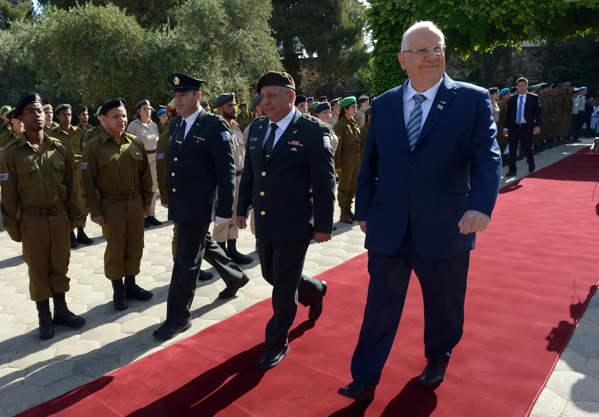 נשיא המדינה השיב לו בהצדעה: "טייסי חייל האוויר וחיילי צה"ל באוויר בים וביבשה, חג עצמאות שמח!". מיד בסיום המטס סקרו הנשיא והרמטכ"ל את שורות 121 החיילים המצטיינים שנבחרו והומלצו על ידי מפקדיהם לקבל אות הצטיינות מהנשיא על שירות משמעותי ותרומה יוצאת דופן לצה"ל ולמדינת ישראל.