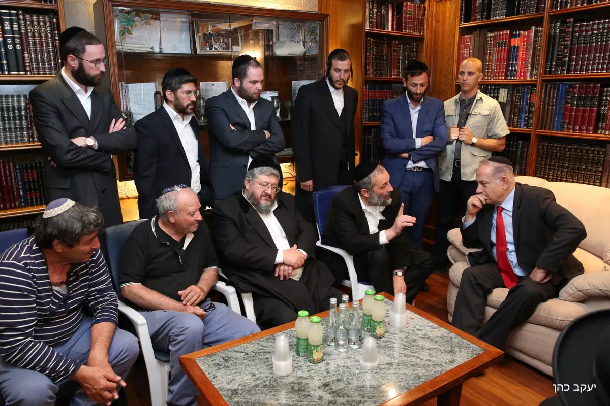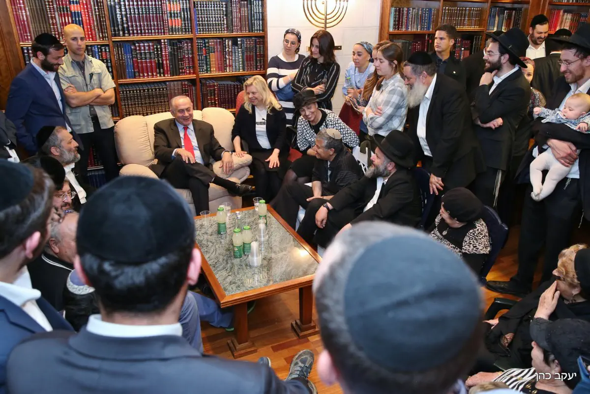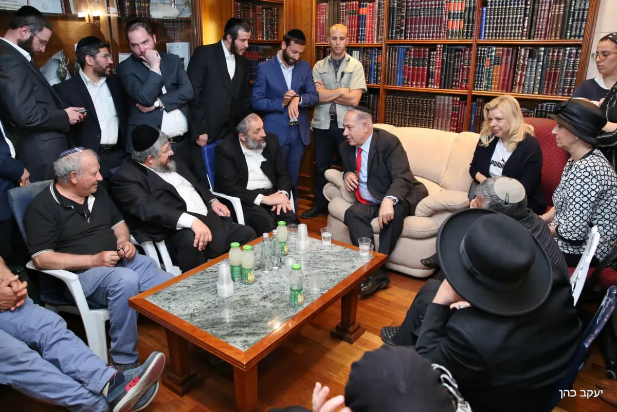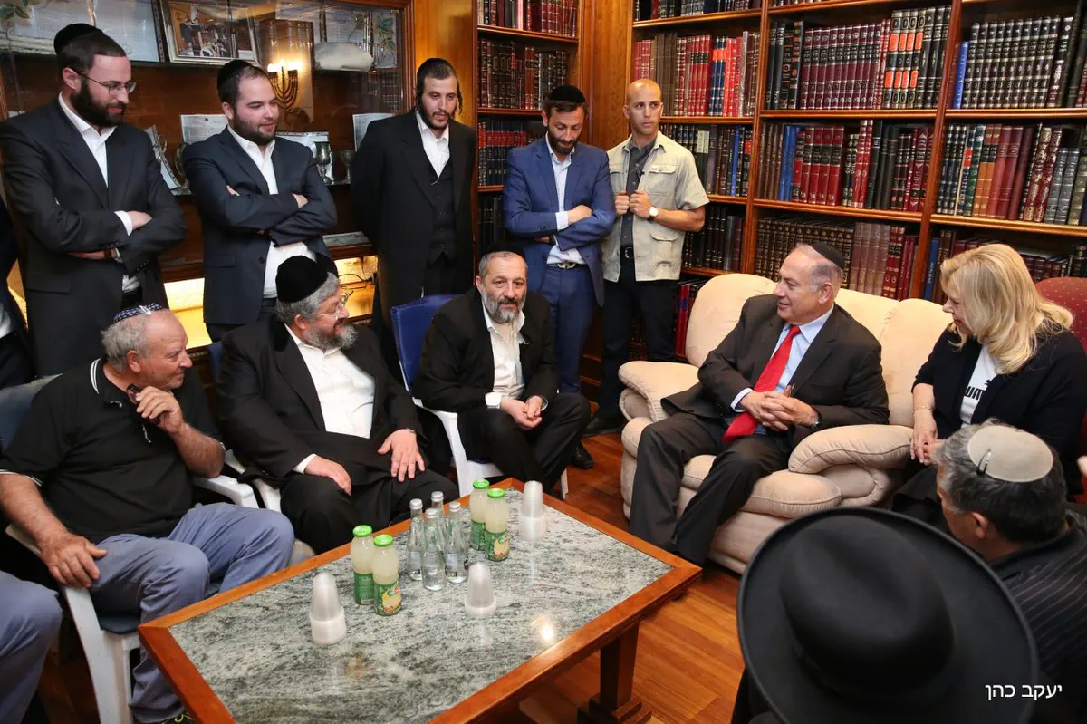 ראש הממשלה נתניהו ניחם אמש (שני) את שר הפנים אריה דרעי (ש"ס) היושב 'שבעה' על אמו בהר נוף בירושלים.