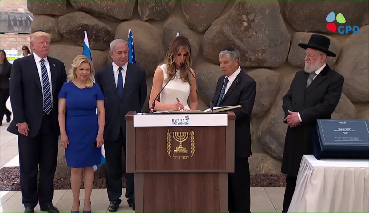נשיא ארה"ב דונלד טראמפ, רעיתו מלאניה ובני פמלייתו השתתפו בצהריים בטקס זיכרון באוהל יזכור ב"יד ושם" בירושלים.