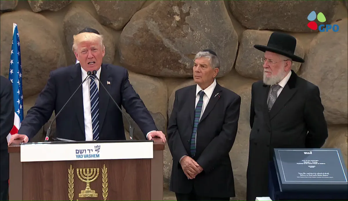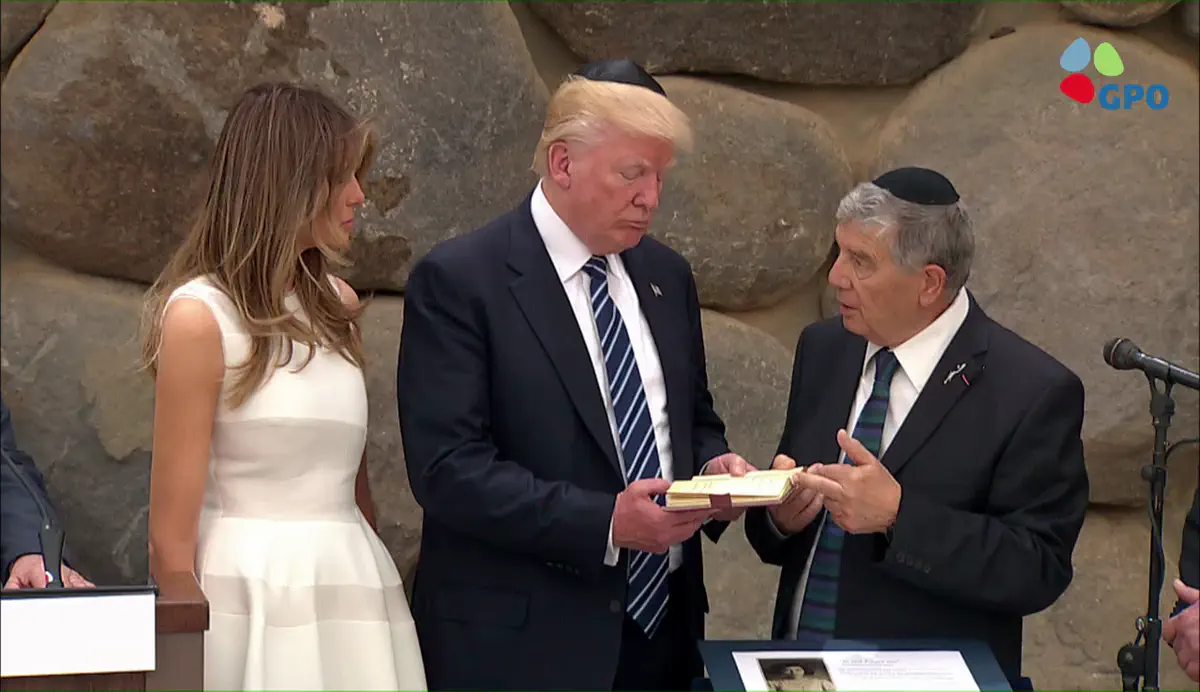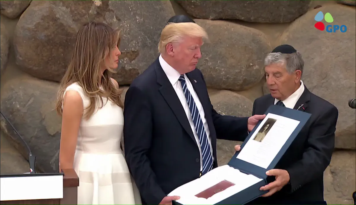 לאחר הטקס והחתימה בספר האורחים מסר טראמפ הצהרה, בפתחה אמר, "אנחנו נמצאים כאן ביד ושם כדי לכבד את זכרם של שישה מיליון יהודים שנרצחו בשואה".