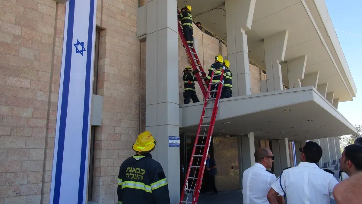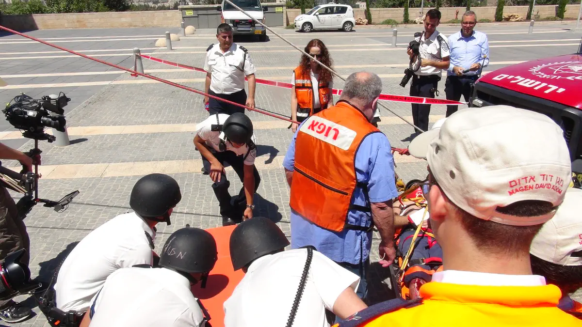 צוותי מגן דוד אדום, משמר הכנסת, משטרת ישראל, כיבוי אש ופיקוד העורף תרגלו היום (שלישי) במליאת הכנסת תרחיש של רעידת אדמה.