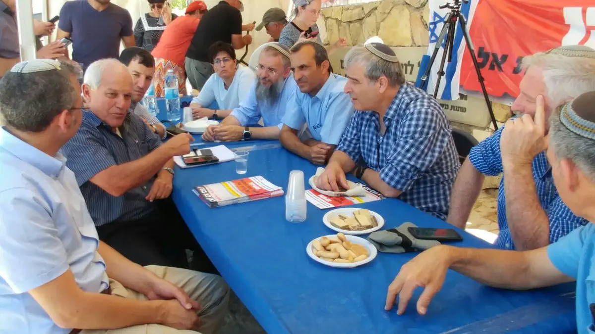 ראש העיר מעלה אדומים בני כשריאל, ראש המועצה האזורית גוש עציון שלמה נאמן וראש המועצה המקומית קדומים חננאל דורני הגיעו הבוקר (ראשון) לביקור תמיכה במאהל המחאה של תושבי בית אל מול משרד ראש הממשלה בירושלים.