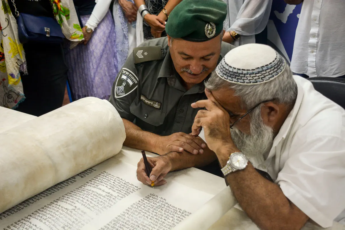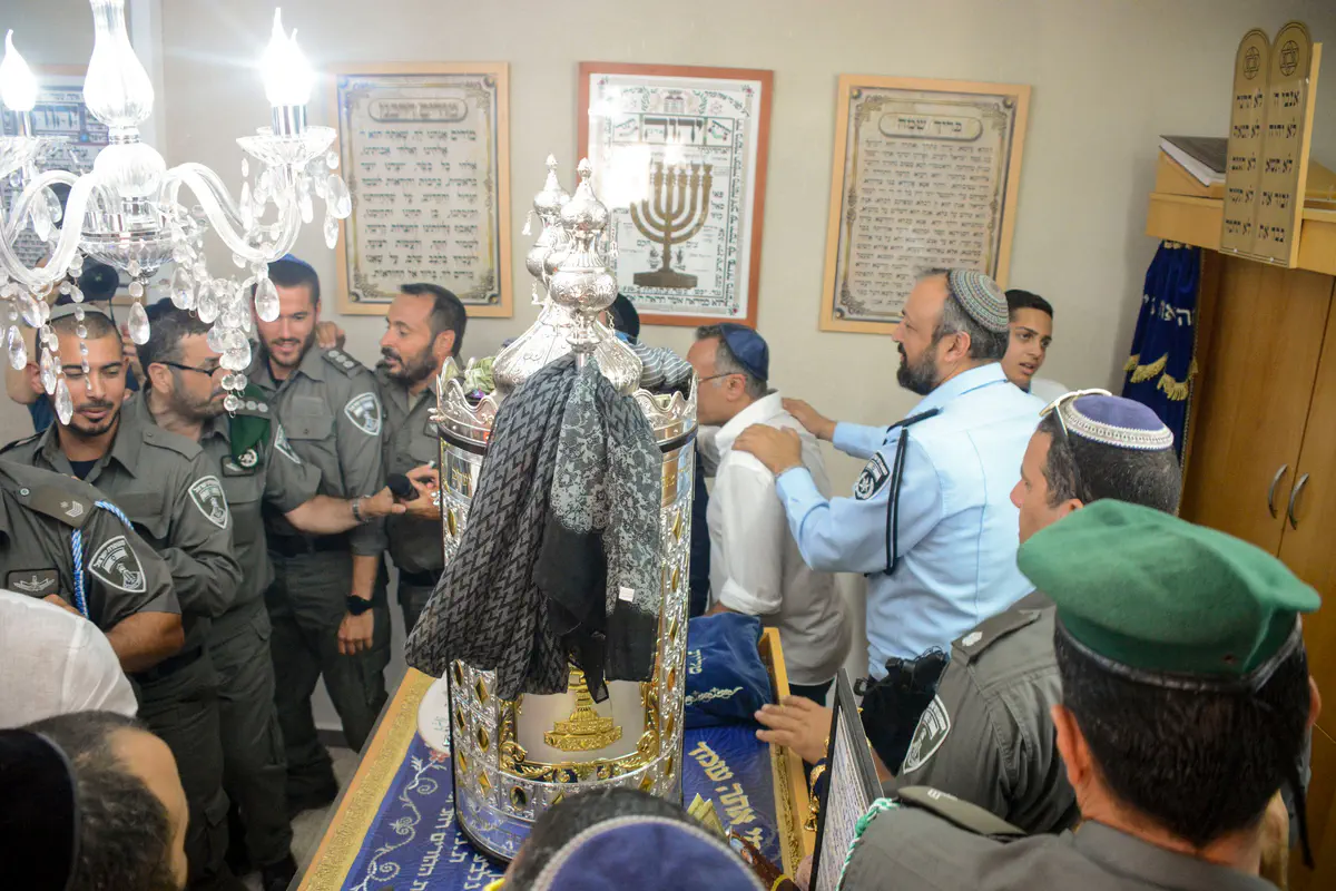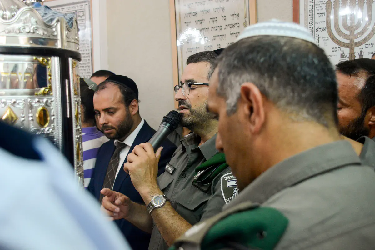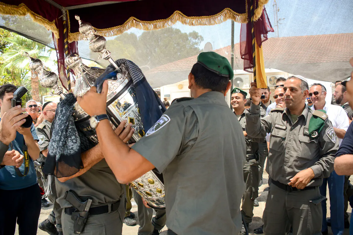 בטקס הכנסת ספר התורה השתתפו בין היתר הרב הראשי של משטרת ישראל נצ"מ רמי ברכיהו, מפקדי מג"ב, לוחמים ובני ומשפחת התורמים מארה"ב.