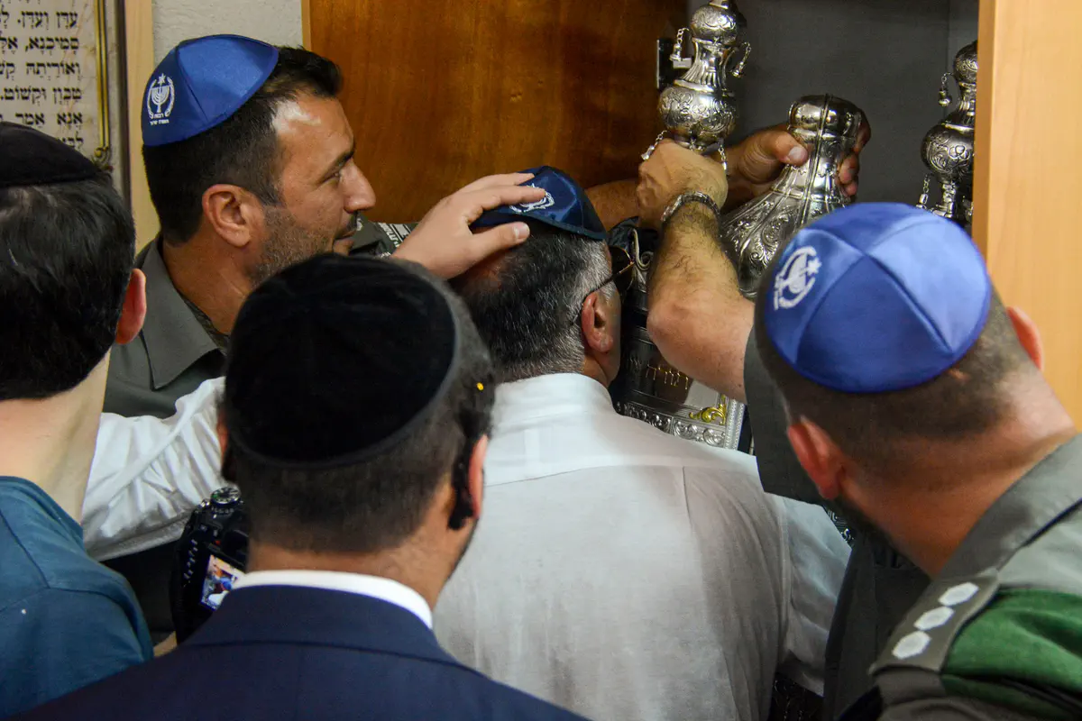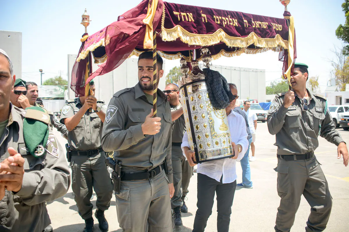 ספר תורה שנתרם על ידי יהודים מארה"ב הוכנס היום (רביעי) לבסיס משמר הגבול ב"יד מרדכי" שבו שירתה הלוחמת הדס מלכא הי"ד שנרצחה בפיגוע בשער שכם.