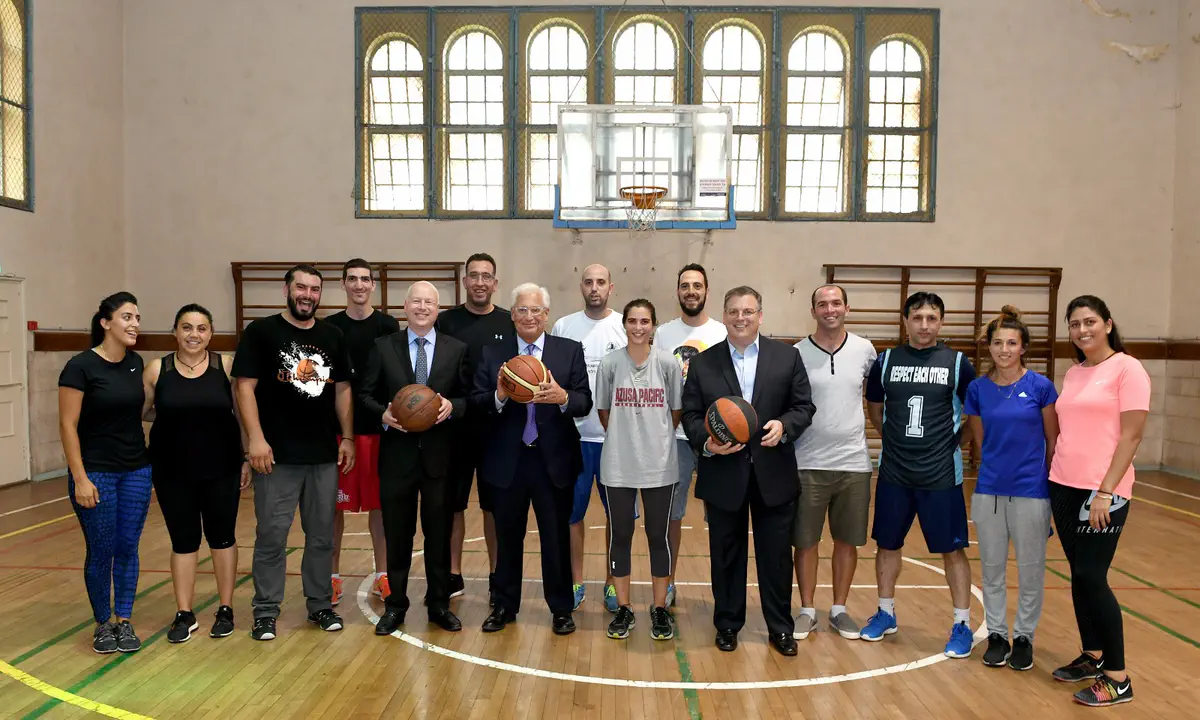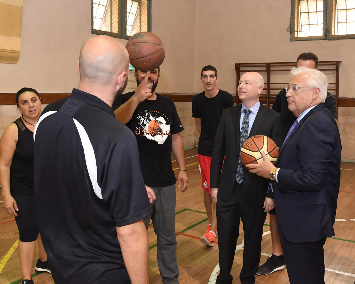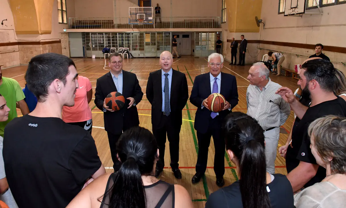 נציגו המיוחד של הנשיא טראמפ למו"מ בינלאומי ג'ייסון גרינבלט, שגריר ארה"ב בישראל דיוויד פרידמן והקונסול הכללי של ארה"ב בירושלים דונלד בלום נפגשו היום (שלישי) עם מאמני כדורסל ישראלים ופלסטינים.